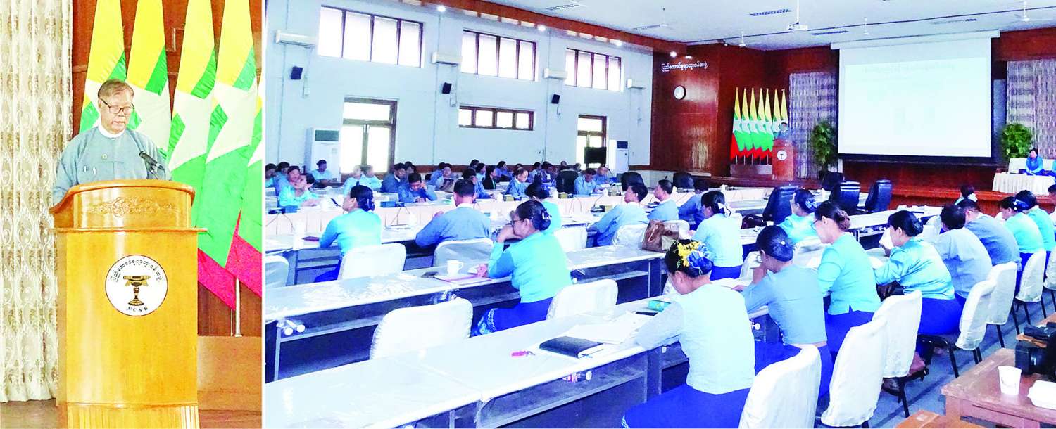 “နိုင်ငံတော်၏ အကျိုးစီးပွားအတွက် ဝန်ထမ်းအဖွဲ့အစည်းများ၏ ပြည်သူ့ဝန်ဆောင်မှုအခန်းကဏ္ဍ အရေးပါမှု ဆိုင်ရာအလုပ်ရုံဆွေးနွေးပွဲ” ကို ၂၀၂၄ ခုနှစ် ဇွန် ၅ ရက်မှ ၇ ရက်အထိ ကျင်းပ ခဲ့ပြီး ဆွေးနွေးပွဲပထမနေ့တွင် “ဝန်ကြီးဌာန၊ အဖွဲ့အစည်းများ၏ ဝန်ထမ်းအင်အားစုဖွဲ့မှု ခိုင်မာအားကောင်းစေရန်ဆောင်ရွက်ခြင်း”၊ “အရည်အချင်းပြည့်မီ၍ စွမ်းဆောင်ရည်ရှိသည့် နိုင်ငံ့ဝန်ထမ်းများ ရွေးချယ်ခန့်ထားခြင်း” ခေါင်းစဉ်များနှင့် စပ်လျဉ်း၍လည်းကောင်း၊ ဒုတိယနေ့တွင် “နိုင်ငံ့ဝန်ထမ်းဥပဒေ၊ နည်းဥပဒေများ၊ မူဝါဒ၊ လုပ်ထုံးလုပ်နည်းများ ခိုင်မာအားကောင်းစေရန် ဆောင်ရွက်ခြင်း”၊ “ဒီဂျစ်တယ်စနစ်ကိုအခြေခံ၍ ပြည်သူ့ဝန်ဆောင်မှုလုပ်ငန်းများ အဆင့်မြှင့်တင် ဆောင်ရွက်ခြင်း” ခေါင်းစဉ်များနှင့် စပ်လျဉ်း၍လည်းကောင်း ဆွေးနွေးတင်ပြခဲ့ကြကြောင်း၊ အလုပ်ရုံဆွေးနွေးပွဲ သုံးရက်တာကာလအတွင်း ဦးဆောင် ဆွေးနွေးသူများက ခေါင်းစဉ်အလိုက် အချိန်ကိုက်ကွပ်ကဲ ဆောင်ရွက်နိုင်ခြင်း၊ တင်ပြဆွေးနွေးသူများကလည်း ပေးထားသည့်ခေါင်းစဉ်အလိုက် ရှုထောင့်အမြင်အမျိုးမျိုးဖြင့် ဆွေးနွေးတင်ပြခြင်းတို့ကို ဆောင်ရွက်ခဲ့ကြကြောင်း သိရသည်။
