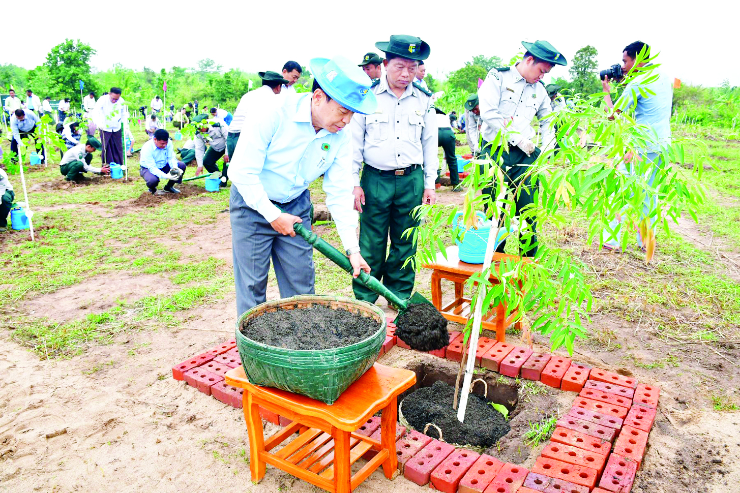 ဦးစွာ နေပြည်တော်ကောင်စီဥက္ကဋ္ဌက အမှာစကားပြောကြားပြီး ၂၀၂၄ ခုနှစ် မိုးရာသီသစ်ပင် စိုက်ပျိုးပွဲ အထိမ်းအမှတ်အဖြစ် ကံ့ကော်ပင်ကို စိုက်ပျိုးပေးသည်။