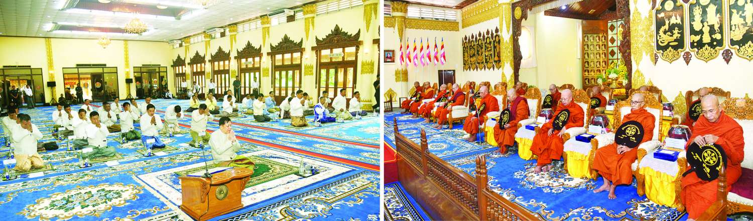 ထို့နောက် အခမ်းအနားကို နမောတဿသုံးကြိမ်ရွတ်ဆိုဘုရားကန်တော့ ဖွင့်လှစ်ပြီး နိုင်ငံတော်စီမံအုပ်ချုပ်ရေးကောင်စီဥက္ကဋ္ဌ နိုင်ငံတော်ဝန်ကြီးချုပ်နှင့် တက်ရောက်လာကြသူများသည် ဆရာတော်ကြီးများ ရွတ်ပွားချီးမြှင့်တော်မူသည့် မေတ္တာသုတ်ပရိတ်တရားတော်များကိုနာယူကြသည်။ ထို့နောက် နိုင်ငံတော်စီမံအုပ်ချုပ်ရေးကောင်စီဥက္ကဋ္ဌ နိုင်ငံတော်ဝန်ကြီးချုပ်နှင့် တက်ရောက်လာကြသူများက အရိယာသာဝတ္ထိဂါထာနှင့် မေတ္တာပို့လင်္ကာနှစ်ပိုဒ်ကို သံပြိုင်ညီညာ ရွတ်ဆိုပူဇော်ကြသည်။