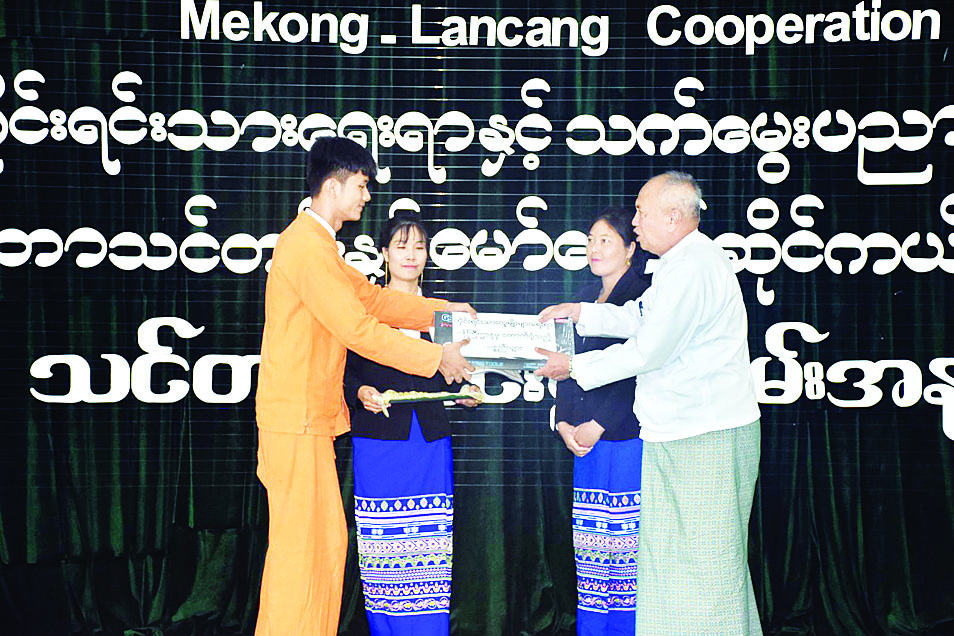 ယင်းနောက် တိုင်းရင်းသားလူမျိုးများရေးရာဝန်ကြီးဌာနက ထောက်ပံ့ပေးသည့် မော်တော်ဆိုက်ကယ်စက်ပြင်ပစ္စည်းများနှင့် သင်တန်းဆင်းလက်မှတ်များကို ရှမ်းပြည်နယ် တိုင်းရင်းသားရေးရာဝန်ကြီး ဦးအောင်ကြည်ဝင်းနှင့် တိုင်းရင်းသားအခွင့်အရေးများ ကာကွယ်စောင့်ရှောက်ရေးဦးစီးဌာန ညွှန်ကြားရေးမှူးချုပ် ဦးမင်းအေးကိုတို့က ပေးအပ်ကြသည်။