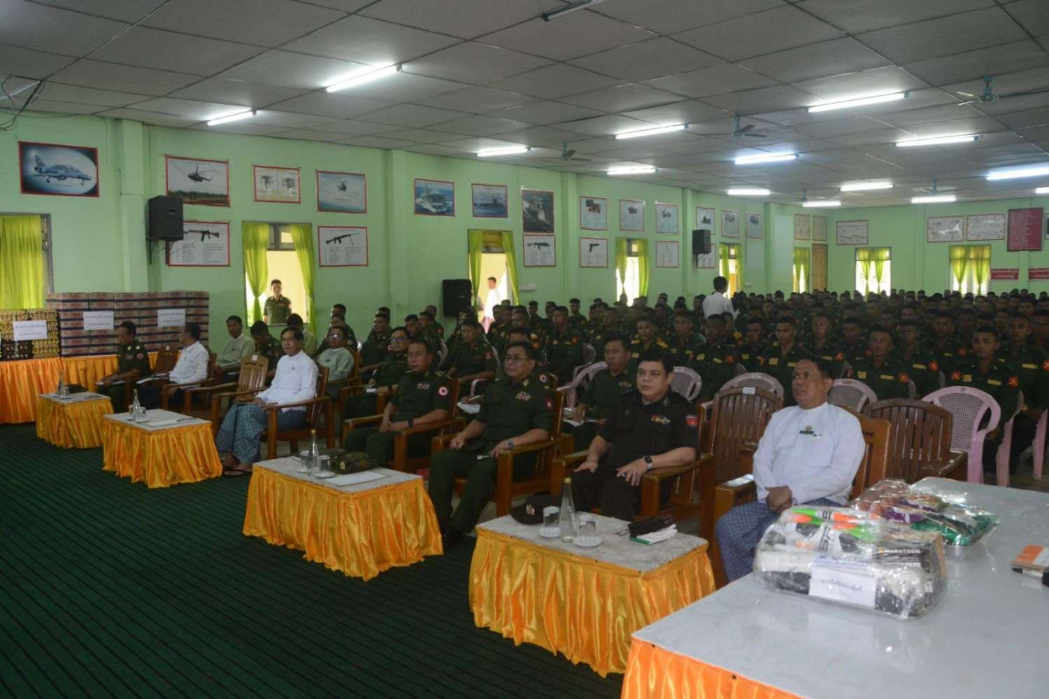 ယခု သင်တန်းများတွင် တက်ရောက်နေသူများသည် ကိုယ်တိုင်ဆန္ဒပြုသူများဖြစ်သည်ကို သိရှိရပါကြောင်း၊ ကိုယ်တိုင်ဆန္ဒပြု၍ ဝင်ရောက်လာခြင်းဖြစ်သည့်အတွက် ဝမ်းမြောက်စွာ ကြိုဆိုဂုဏ်ယူပါကြောင်း၊ တပ်မတော်သားတစ်ယောက်ဖြစ်လာပါက ပေးအပ်သည့် လုံခြုံရေးနှင့်ကာကွယ်ရေးတာဝန်များကို ထမ်းဆောင်ရမည်ဖြစ်ကြောင်း၊ နေ့စဉ်ရွတ်ဆိုသည့် သစ္စာအဓိဋ္ဌာန်လေးချက်တွင် ငါ့နိုင်ငံတော်၊ ငါ့နိုင်ငံသား၊ ငါ့တပ်မတော်အတွက် ငါ၏အသက်ကို စွန့်လွှတ်ရန်ဟုပင် အဓိဋ္ဌာန်ပြုထားပါကြောင်း၊ စစ်သင်တန်းဖြစ်သဖြင့် စနစ်တကျဖြင့် စည်းနှင့် ကမ်းနှင့်အညီ နေထိုင်ရန်လိုအပ်ကြောင်း၊ ကိုယ်ခန္ဓာကြံ့ခိုင်သန်စွမ်းစေရန်နှင့် နိုးကြားဖြတ်လတ်၍ တက်ကြွရန်လိုအပ်ပါကြောင်း၊ အမြဲတမ်းတိုက်ပွဲဝင်အသင့်ဖြစ်နေရန်နှင့် ဇွဲသတ္တိရှိရန်လိုအပ်ကြောင်း၊ တပ်မတော်အနေဖြင့် ပြည်သူလူထုနှင့် နိုင်ငံတော်အတွက် အမြဲတမ်းပင် ရှေ့ကမားမားမတ်မတ်ရပ်တည်ခဲ့ကြောင်း၊ မိမိတို့တပ်မတော်သားများအနေဖြင့် ရဲသော် မသေသေသော်ငရဲမလားဆိုသည့်ဆောင်ပုဒ်အတိုင်း ပေးအပ်သည့်တာဝန်ကို ရဲဝံ့ကျေပွန်စွာ ထမ်းဆောင်ရန်လိုအပ်ကြောင်း၊ သင်ကြားပေးသည့် စစ်ပညာများကို ကျွမ်းကျင်စွာတတ် မြောက်အောင် သင်ကြားကြရန်လိုကြောင်း၊ ခန္ဓာကိုယ်ကြံ့ခိုင်သန်စွမ်းရန်လိုသကဲ့သို့ စိတ်ဓာတ်ပိုင်းဆိုင်ရာလည်း ကြံ့ခိုင်သန်စွမ်းရန်လိုအပ်ကြောင်း၊ ပြည်သူက အားထားရသည့် တပ်မတော်သားကောင်းများဖြစ်ရန် လိုအပ်ပါကြောင်း၊ နိဂုံးချုပ်အနေဖြင့် လေ့ကျင့်သင်ကြားပေးသည့် စစ်ပညာများကို ကျွမ်းကျင်တတ်မြောက်ရန်နှင့် စိတ်ဓာတ်ကြံ့ခိုင်ကောင်းမွန်သည့် စစ်သည်ကောင်းတစ်ယောက်ဖြစ်ရန် ကြိုးစားလေ့ကျင့်ရန်လိုကြောင်း ပြောကြားသည်။