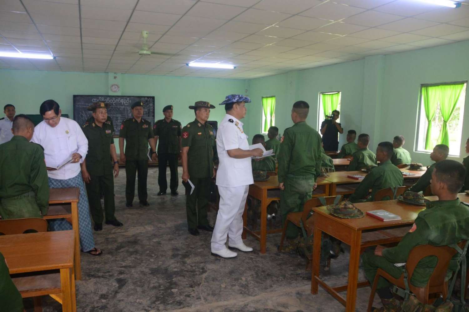 ထို့နောက် ပြည်ထောင်စုဝန်ကြီးနှင့် တာဝန်ရှိသူများသည် လေ့ကျင့်ရေးကွင်းအသီးသီး၌ လက်နက်ငယ်သင်ခန်းစာနှင့် ခန်းမအတွင်း စစ်နည်းဗျူဟာသင်တန်းပို့ချနေမှုများ၊ သင်တန်းသားများ အိပ်ဆောင်များ၊ သင်တန်းသားစားရိပ်သာနှင့် စားဖိုဆောင်များကို လှည့်လည်ကြည့်ရှုစစ်ဆေးပြီး လိုအပ်သည်များကို မှာကြားသည်။