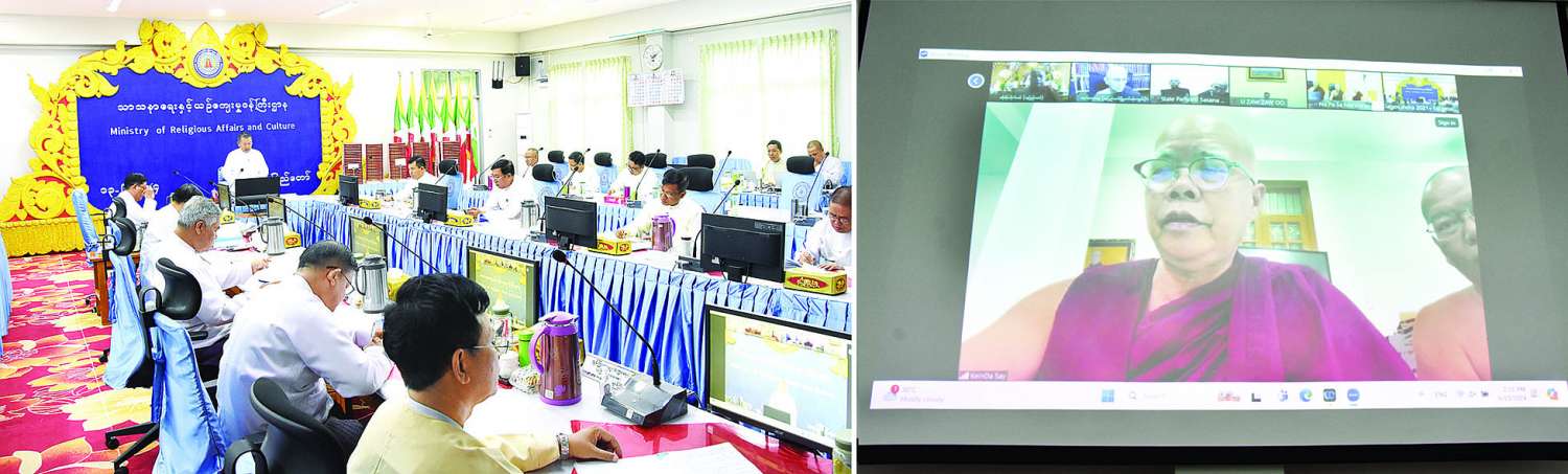 အစည်းအဝေးသို့ အပြည်ပြည်ဆိုင်ရာ ထေရဝါဒဗုဒ္ဓသာသနာပြု တက္ကသိုလ်ပါမောက္ခချုပ် ဆရာတော် ဒေါက်တာဘဒ္ဒန္တဆေကိန္ဒ၊ နိုင်ငံတော်ပရိယတ္တိသာသနာ့ တက္ကသိုလ်(မန္တလေး) ပါမောက္ခချုပ် ဆရာတော် ဒေါက်တာဘဒ္ဒန္တကေသရ အမှူးပြုသော ဆရာ တော်ကြီး ၁၁ ပါး Video Conferencing ဖြင့်တက်ရောက်ကြပြီး သာသနာရေးနှင့်ယဉ်ကျေးမှုဝန်ကြီးဌာန ပြည်ထောင်စုဝန်ကြီး ဦးတင်ဦးလွင်၊ ဒုတိယဝန်ကြီး ဦးအေးထွန်း၊ အမြဲတမ်းအတွင်းဝန်နှင့် တာဝန်ရှိပုဂ္ဂိုလ်များ တက်ရောက်ကြသည်။