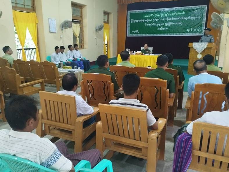 တိုင်းရင်းသားလက်နက်ကိုင်အဖွဲ့နယ်မြေအတွင်း သင်တန်းများတက်ရောက်ခဲ့ပြီး ပြစ်မှုကျူးလွန်ခြင်းမရှိခဲ့သည့် ဥပဒေဘောင်အတွင်းဝင်ရောက်လာသော PDF အဖွဲ့ဝင်များအား ပြန်လည်ကြိုဆိုလက်ခံပွဲကို ယနေ့နံနက်ပိုင်းတွင် မကွေးတိုင်းဒေသကြီး သရက်မြို့မြို့နယ်အထွေထွေအုပ်ချုပ်ရေးဦးစီးဌာန အစည်းအဝေးခန်းမ၌ပြုလုပ်ရာ အလယ်ပိုင်းတိုင်စစ်ဌာနချုပ်မှ တာဝန်ရှိသူများ၊ ၎င်းတို့၏မိဘအုပ်ထိန်းသူများ တက်ရောက်ကြသည်။