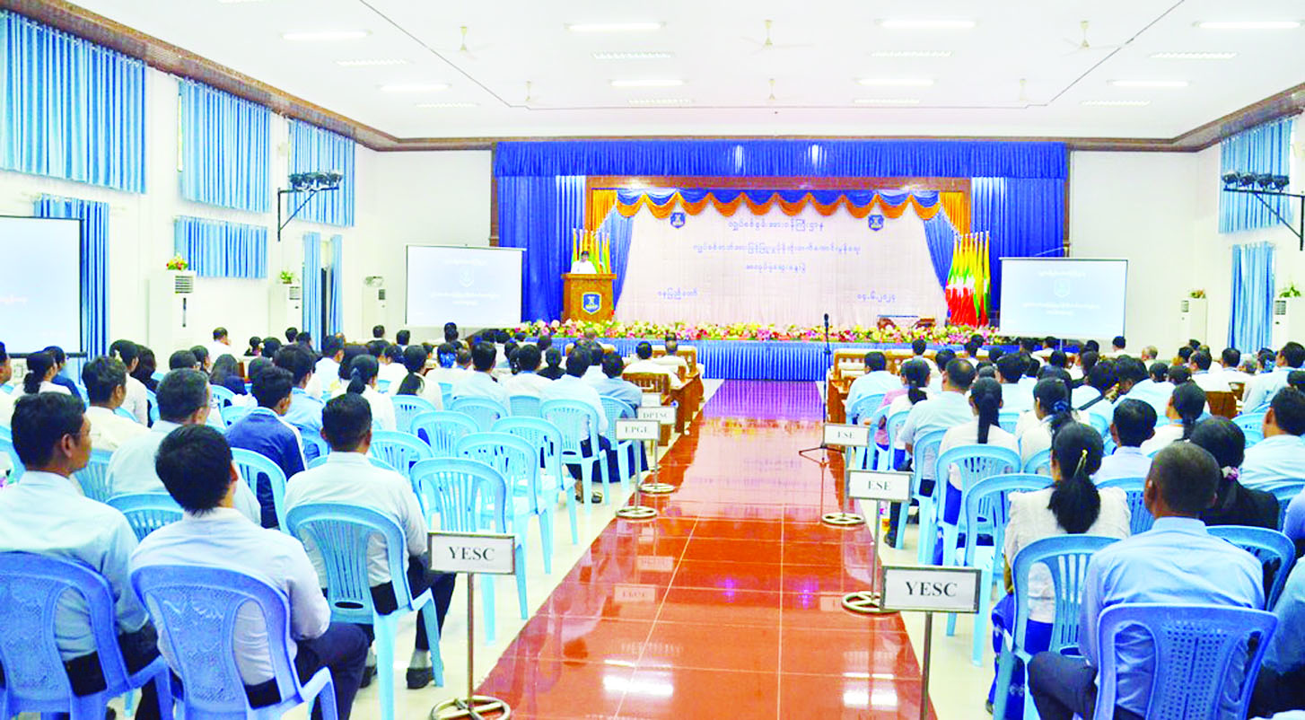 လျှပ်စစ်ဓာတ်အားဖြန့်ဖြူးမှု ပိုမိုတိုးတက်ကောင်းမွန်ရေး အလုပ်ရုံဆွေးနွေးပွဲကို ယနေ့တွင် နေပြည်တော်ရှိ လျှပ်စစ်စွမ်းအားဝန်ကြီးဌာန ရုံးအမှတ် (၂၇) ရဲရွာခန်းမ၌ ကျင်းပပြုလုပ်ရာ လျှပ်စစ်စွမ်းအားဝန်ကြီးဌာန ပြည်ထောင်စုဝန်ကြီး ဦးဉာဏ်ထွန်း၊ ဒုတိယဝန်ကြီး ဦးအေးကျော်၊ ပြည်ထောင်စုဝန်ကြီးရုံး၊ ဦးစီးဌာန၊ လုပ်ငန်းနှင့် ကော်ပိုရေးရှင်းတို့မှဥက္ကဋ္ဌများ၊ ညွှန်ကြားရေးမှူးချုပ်များ၊ ဦးဆောင်ညွှန်ကြားရေးမှူးများ၊ အရာထမ်း၊ အမှုထမ်းများနှင့် ဆွေးနွေးတင်ပြမည့်သူများ တက်ရောက်ကြသည်။