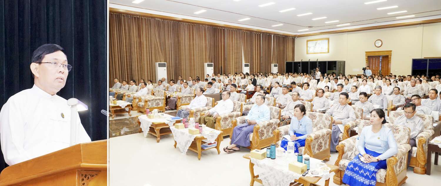 ဦးစွာ ပြည်ထောင်စုဝန်ကြီးက ဝန်ကြီးဌာနနှင့် ဝန်ကြီးဌာနအောက်ရှိ ဦးစီးဌာနများတွင် တာဝန်ထမ်းဆောင်လျက်ရှိသည့် ဝန်ထမ်းများအနေဖြင့် အဂတိလိုက်စားမှုဖြစ်စေနိုင်သည့် ကိစ္စရပ်များ၊ နစ်နာဆုံးရှုံးမှုများနှင့် ဆိုးကျိုးများ၊ အဂတိလိုက်စားမှု တိုက်ဖျက်ရေးဥပဒေပါ ပြဋ္ဌာန်းချက်များနှင့် ပြစ်မှုပြစ်ဒဏ်များကို သိရှိနားလည်သဘောပေါက်ပြီး အဂတိလိုက်စားမှု ဖြစ်ပေါ်စေနိုင်သည့် အကြောင်းအရာများကို ရှောင်ကြဉ်နိုင်စေရန်ရည်ရွယ်၍ ကျင်းပခြင်းဖြစ်ကြောင်း၊ အဂတိလိုက်စားမှုသည် နယ်ပယ်အသီးသီးတွင် ပုံစံအမျိုးမျိုးနှင့် ဖြစ်ပေါ်နိုင်သည့်အတွက် ကျူးလွန်မိပါက အဂတိလိုက်စားမှု တိုက်ဖျက်ရေးဥပဒေပါ ပြဋ္ဌာန်းချက် များနှင့်အညီ အရေးယူအပြစ်ပေးခံရခြင်းကြောင့် မိမိပတ်ဝန်းကျင် အသိုင်းအဝိုင်းတွင် ဂုဏ်သိက္ခာကျဆင်းစေမည်ဖြစ်သည့်အတွက် နိုင်ငံ့ဝန်ထမ်းများ သိရှိလိုက်နာ ရှောင်ကြဉ်ရန်အထူးလိုအပ်ကြောင်း၊ ဝန်ကြီးဌာနအနေဖြင့် အဂတိလိုက်စားမှုတားဆီးကာကွယ်ရေးအဖွဲ့ (Corruption Prevention Unit – CPU) ကို ဖွဲ့စည်း၍ အဂတိလိုက်စားမှု လျော့နည်းပပျောက်ရေးအတွက် စီမံဆောင်ရွက်လျက်ရှိပြီး ယနေ့အခမ်းအနားသို့ တက်ရောက်လာသည့် နိုင်ငံ့ဝန်ထမ်းများအနေဖြင့် အဂတိလိုက်စားမှု တိုက်ဖျက်ရေးနှင့်စပ်လျဉ်းသည့် အသိပညာဗဟုသုတများကို မိမိပတ်ဝန်းကျင် မိမိအဖွဲ့အစည်းများသို့ ပြန်လည်မျှဝေပေးစေလိုကြောင်း ပြောကြားသည်။