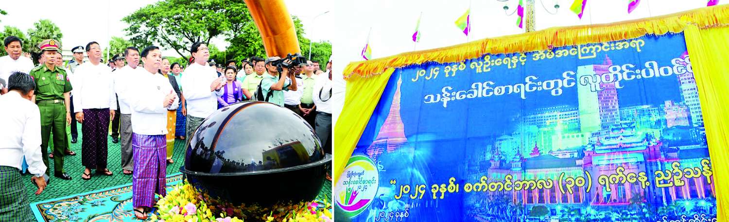 ရန်ကုန်တိုင်းဒေသကြီးအတွင်း သန်းခေါင်စာရင်းကောက်ယူရေးဆိုင်ရာ အသိပညာပေးဆိုင်းဘုတ်စိုက်ထူပွဲကို ယနေ့နံနက် ၈ နာရီခွဲတွင် ရန်ကုန်မြို့ ပြည်သူ့ရင်ပြင်ရှေ့၌ ကျင်းပသည်။