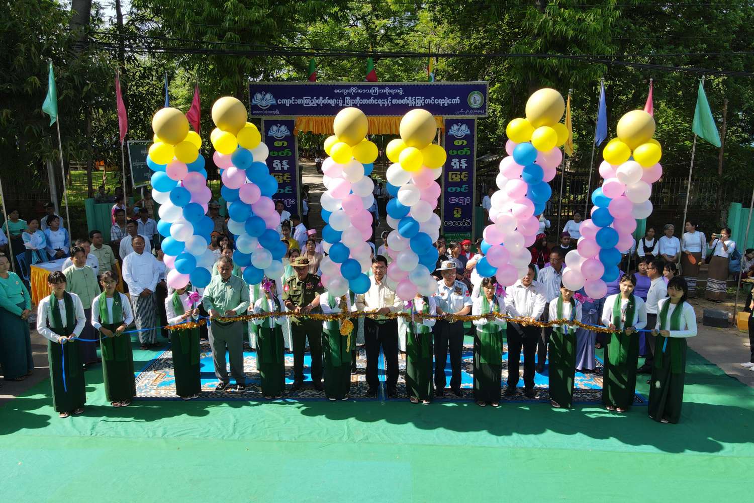ရှေးဦးစွာ ကျောင်းစာကြည့်တိုက်များ ဖွံ့ဖြိုးတိုးတက်ရေးနှင့် စာဖတ်ရှိန်မြှင့်တင်ရေးပွဲတော်မုခ်ဦးအား မကွေးတိုင်းဒေသကြီးဝန်ကြီးချုပ် ဦးတင့်လွင်၊ အနောက်ပိုင်းလေတပ်ကွပ်ကဲမှု ဌာနချုပ်မှူး ဗိုလ်မှူးချုပ် သိန်းထွန်းဦး၊ လုံခြုံရေးနှင့် နယ်စပ်ရေးရာဝန်ကြီး ဗိုလ်မှူးကြီး မိုးမင်းသိန်း၊ သယံဇာတရေးရာဝန်ကြီး ဦးစိုင်းမြင့်အေးနှင့် လူမှုရေးရာဝန်ကြီး ဦးမျိုးမြင့်တို့က ဖဲကြိုးဖြတ်ဖွင့်လှစ်ပေးခဲ့ပြီး ပါဝင်ကူညီခဲ့သည့် ပန်းပွားအဖွဲ့နှင့် ဘင်ခရာအဖွဲ့အား ဂုဏ်ပြုချီးမြှင့်ငွေများ ပေးအပ်ခဲ့သည်။