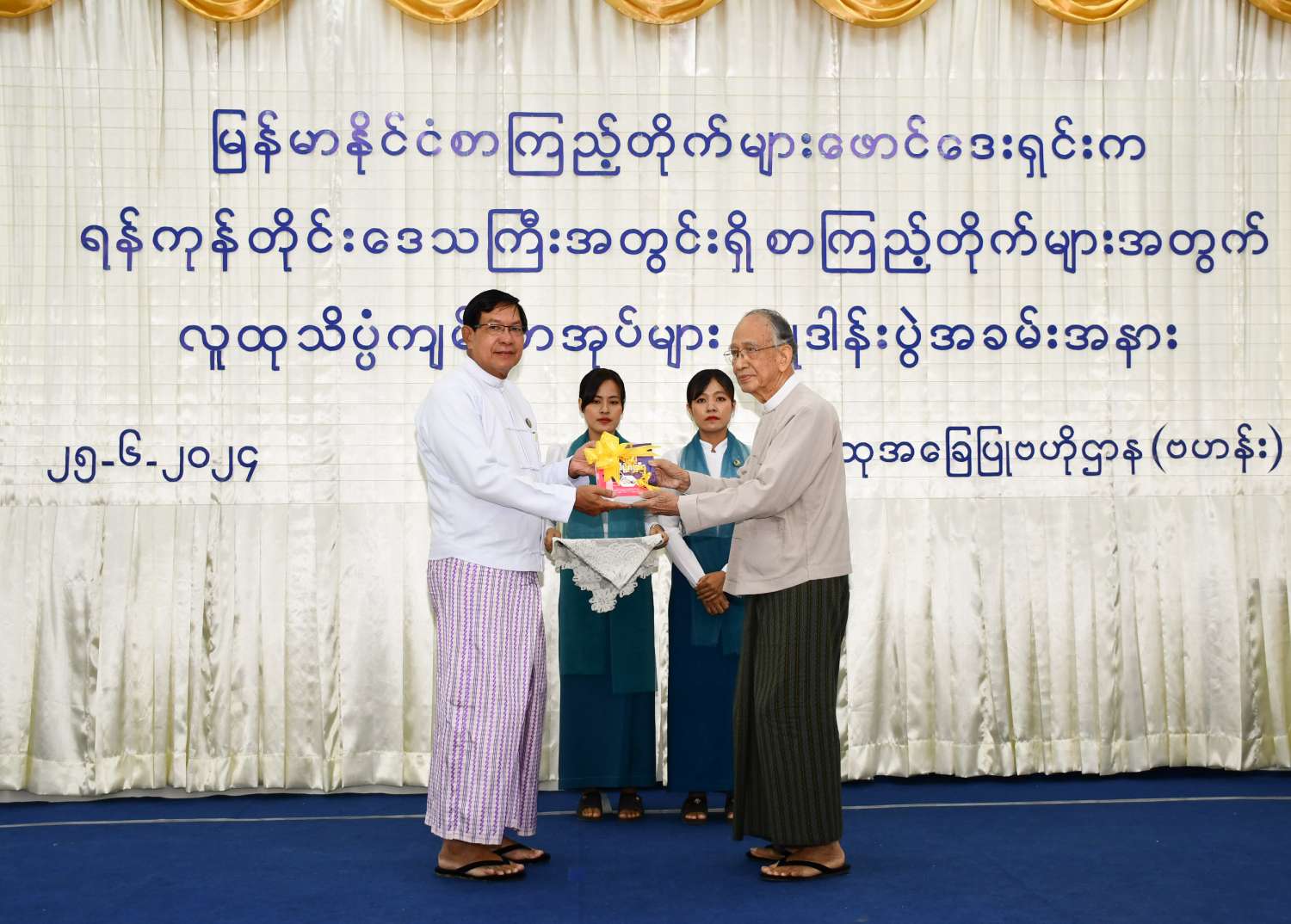ယင်နောက် မြန်မာနိုင်ငံစာကြည့်တိုက်များဖောင်ဒေးရှင်းဥက္ကဋ္ဌ ဦးညွန့်ဆွေက စာအုပ်များလှူဒါန်းရခြင်းအကြောင်း ရှင်းလင်းပြောကြားပြီး ရန်ကုန်တိုင်းဒေသကြီးအတွင်းရှိ စာကြည့်တိုက် ၁၂၅ တိုက်အတွက် လူထုသိပ္ပံကျမ်းစာအုပ် ၆၂၅ အုပ် လှူဒါန်းရာ တိုင်းဒေသကြီးဝန်ကြီးချုပ်က လက်ခံရယူခဲ့သည်။