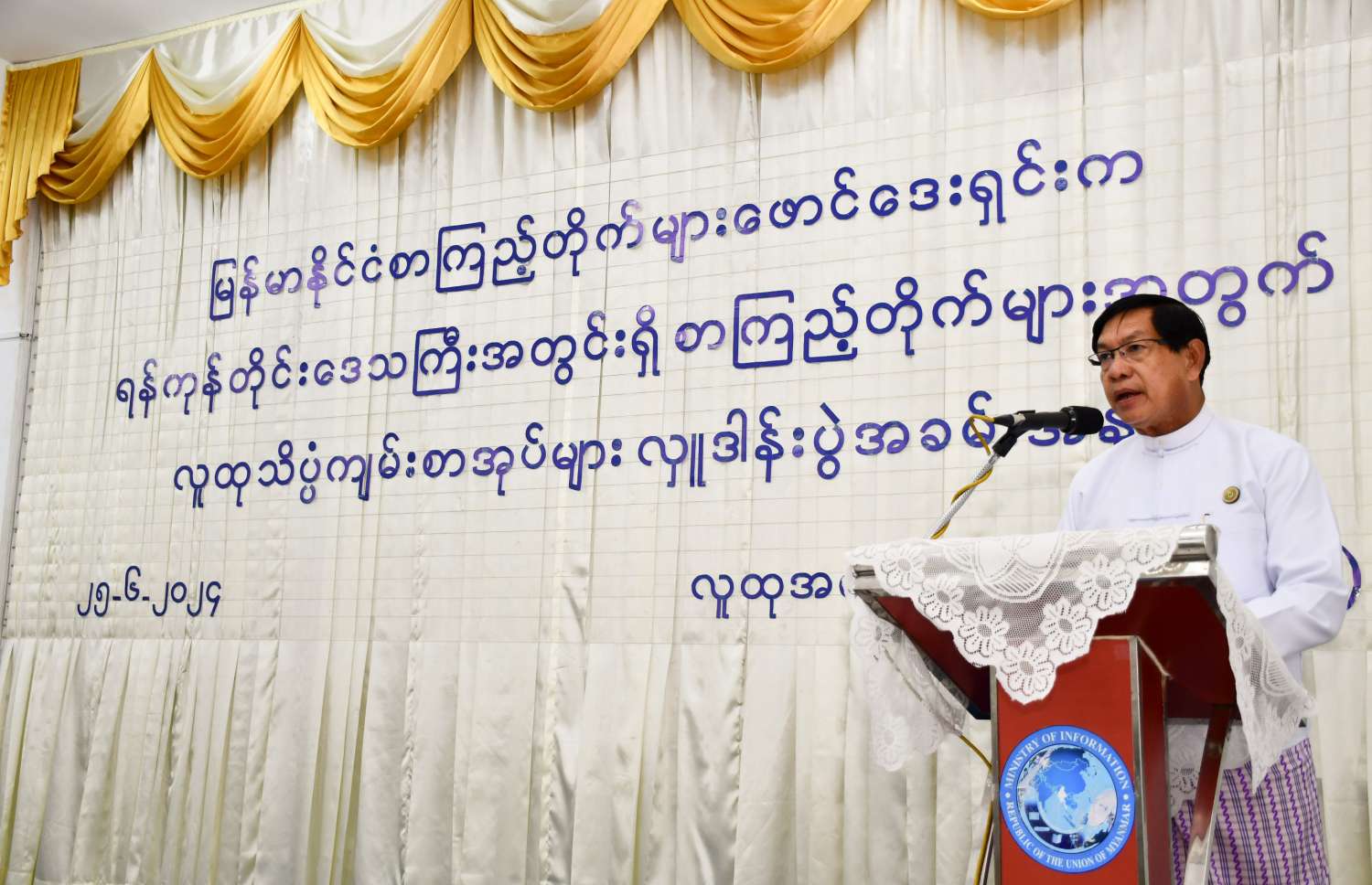 ရှေးဦးစွာ ရန်ကုန်တိုင်းဒေသကြီး စာကြည့်တိုက်များ ကြီးကြပ်ရေးကော်မတီနာယက ရန်ကုန်တိုင်းဒေသကြီးအစိုးရအဖွဲ့ဝန်ကြီးချုပ် ဦးစိုးသိန်းက အဖွင့်အမှာစကားပြောကြားရာ စာပေဆိုသည်မှာ နိုင်ငံနှင့် လူမျိုး၏ အသက်ဝိညာဉ်ပင်ဖြစ်ပါကြောင်း၊ စာပေယဉ်ကျေးမှုမရှိသော လူမျိုးသည် အသက်ဝိညာဉ်ကင်းမဲ့သော ခန္ဓာနှင့်တူပြီး စာပေယဉ်ကျေးမှုထွန်းကားသော လူမျိုးများသည် ကမ္ဘာပေါ်တွင် သက်သောင့်သက်သာနေနိုင်သော လူမျိုးအဖြစ် ရပ်တည်နေနိုင်ကြသည့်အတွက် ဖွံ့ဖြိုးဆဲနိုင်ငံများ၊ ဖွံ့ဖြိုးတိုးတက်သော နိုင်ငံများအနေဖြင့် စာပေအသိပညာဗဟုသုတ ထွန်းကားနေစေရန် အစဉ်ကြိုးပမ်းဆောင်ရွက်နေကြပါကြောင်း၊ နိုင်ငံတော်အစိုးရအနေဖြင့် ကျေးလက်နေပြည်သူများအပါအဝင် ဒေသခံတိုင်းရင်းသားတွေ၏ စာတတ်မြောက်မှုနှင့် အတန်းပညာတတ်မြောက်မှု အားနည်းနေတာကို တွေ့ရှိရသည့်အတွက် တိုင်းရင်းသားပြည်သူတွေ စာတတ်မြောက်ရေးစီမံကိန်းကို အကောင်အထည်ဖော်ဆောင်ရွက်နေတာဖြစ်ပါကြောင်း ပြောကြားခဲ့သည်။