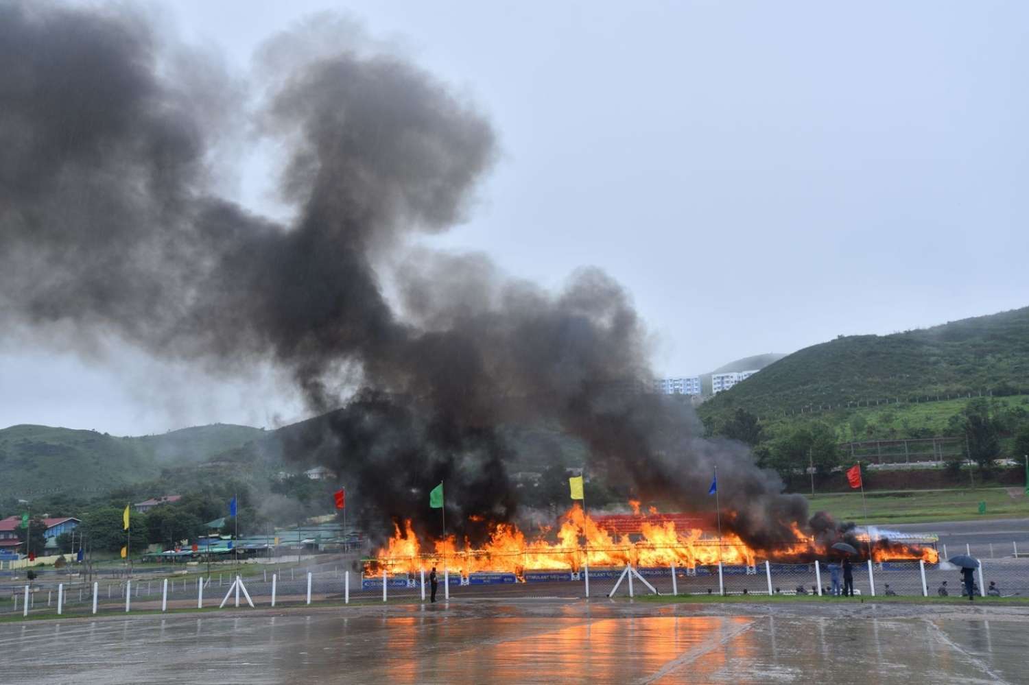 အဆိုပါ မီးရှို့ဖျက်ဆီးပွဲတွင် ရှမ်းပြည်နယ်၊ ကယားပြည်နယ်တို့မှ ဖမ်းဆီးရမိသည့် ဘိန်း ၆၀၀ ကီလိုကျော်၊ ဘိန်းဖြူ ၁၀၃၇ ကီလိုကျော်၊ စိတ်ကြွရူးသွပ်ဆေးပြား ၁၂၁ သန်းကျော်၊ အိုက်စ် ၄၇၇၁ ကီလိုကျော်၊ ကက်တမင်း ၇၆၄ ကီလိုကျော်၊ ဆေးခြောက် ၂၅၆ ကီလိုကျော်အပါအဝင် မူးယစ်ဆေးဝါး ၁၇ မျိုးနှင့် ဓာတုပစ္စည်း ၂၅ မျိုး စုစုပေါင်းတန်ဖိုး မြန်မာငွေကျပ် ၄၅၆ ဘီလီယံကျော် (အမေရိကန် ဒေါ်လာ ၁၃၇.၀၁၃ သန်း) အား ဖျက်ဆီးခဲ့သည်။