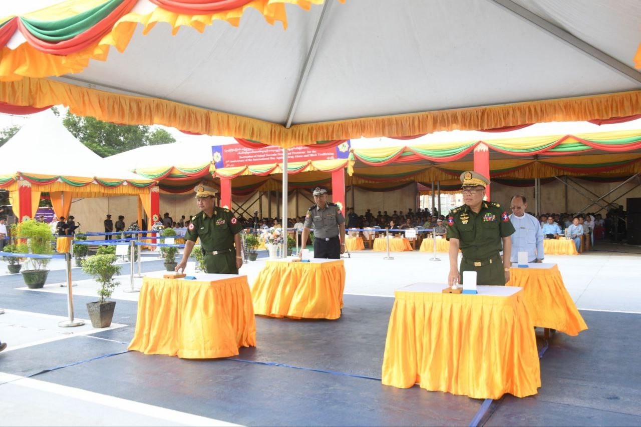 ယခုနှစ်တွင် ဖမ်းဆီးရမိမူးယစ်ဆေးဝါးများ မီးရှို့ဖျက်ဆီးခြင်းနှင့် ဓာတုပစ္စည်းများဖျက်ဆီးခြင်း အစီအစဉ်များကို ရန်ကုန်မြို့၊ မန္တလေးမြို့၊ တောင်ကြီးမြို့နှင့် တိုင်းဒေသကြီး/ပြည်နယ် (၆) ခုမှ မြို့နယ် (၂၄) မြို့နယ်တို့တွင် ကျင်းပပြုလုပ်ခဲ့ရာ စုစုပေါင်းအင်အား ၃၂၁၂ ဦး တက်ရောက်ခဲ့ပြီး ဘိန်း ၁၃၆၆ ကီလိုကျော်၊ ဘိန်းဖြူ ၂၁၇၈ ကီလိုကျော်၊ စိတ်ကြွရူးသွပ်ဆေးပြား ၂၃၉ သန်းကျော်၊ အိုက်စ် ၂၃၃၉၃ ကီလိုကျော်၊ ဘိန်းစာမှုန့် ၁၇၇၅ ကီလိုကျော်၊ ဆေးခြောက် ၁၂၅၇ ကီလိုကျော်၊ ကက်တမင်း ၄၁၆၅ ကီလိုကျော်နှင့် ဘိန်းညိုမှုန် ၁၂ ကီလိုကျော်အပါအဝင် မူးယစ်ဆေးဝါးနှင့် ဓာတု ပစ္စည်း ၇၇ မျိုး၊ စု စုပေါင်းတန်ဖိုး မြန်မာငွေကျပ် ၁၁၆၃ ဘီလီယံကျော် (အမေရိကန်ဒေါ်လာ ၃၄၉.၄၄၃ သန်း) တို့အား ဖျက်ဆီးခဲ့ခြင်းဖြစ်သည်။