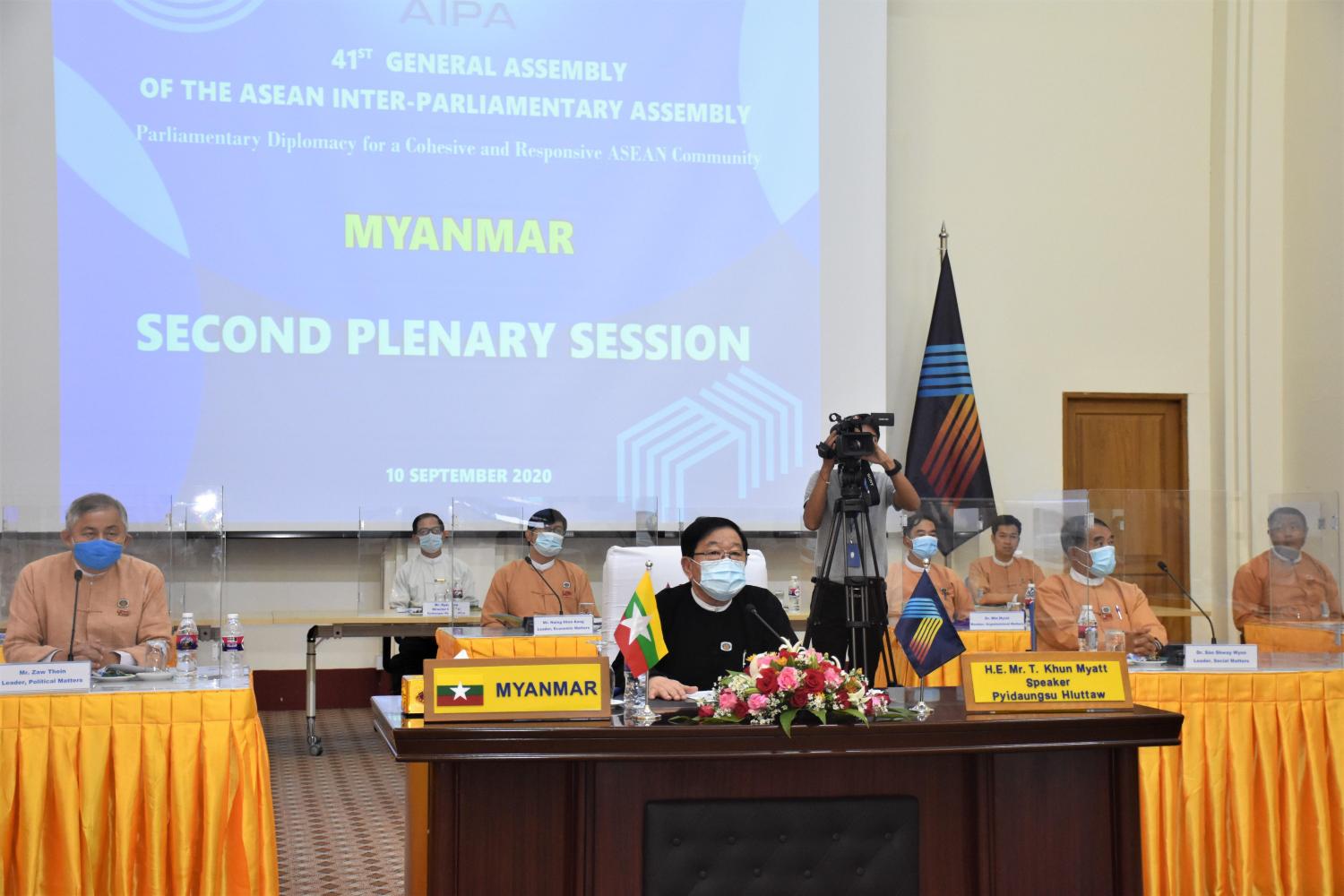 ပြည်ထောင်စုလွှတ်တော်နာယက၊ ပြည်သူ့လွှတ်တော်ဥက္ကဋ္ဌ ဦးတီခွန်မြတ် ဦးဆောင်သော မြန်မာလွှတ်တော် ကိုယ်စားလှယ်အဖွဲ့သည် ယနေ့နံနက်ပိုင်းတွင် Video Conferencing ဖြင့်ကျင်းပသည့် (၄၁) ကြိမ်မြောက် အာဆီယံပါလီမန်များ အထွေထွေညီလာခံ ဒုတိယစုံညီ အစည်းအဝေးနှင့် ပိတ်ပွဲအခမ်းအနားသို့ တက်ရောက်ကြသည်။