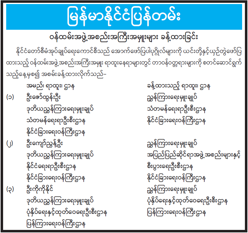 ဦးစီးဌာနနှင့် လုပ်ငန်းများ၏ ကြေညာချက်များ