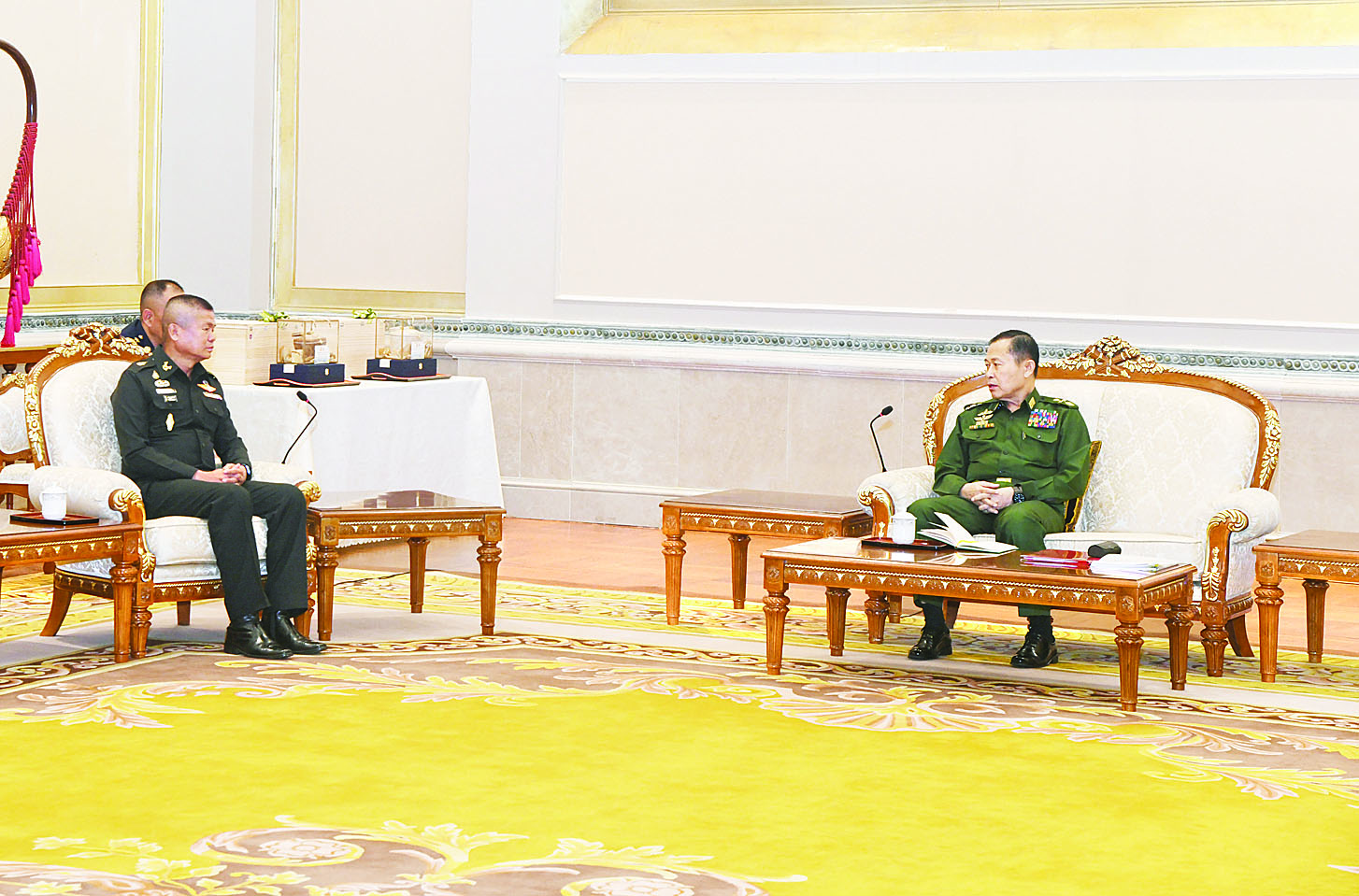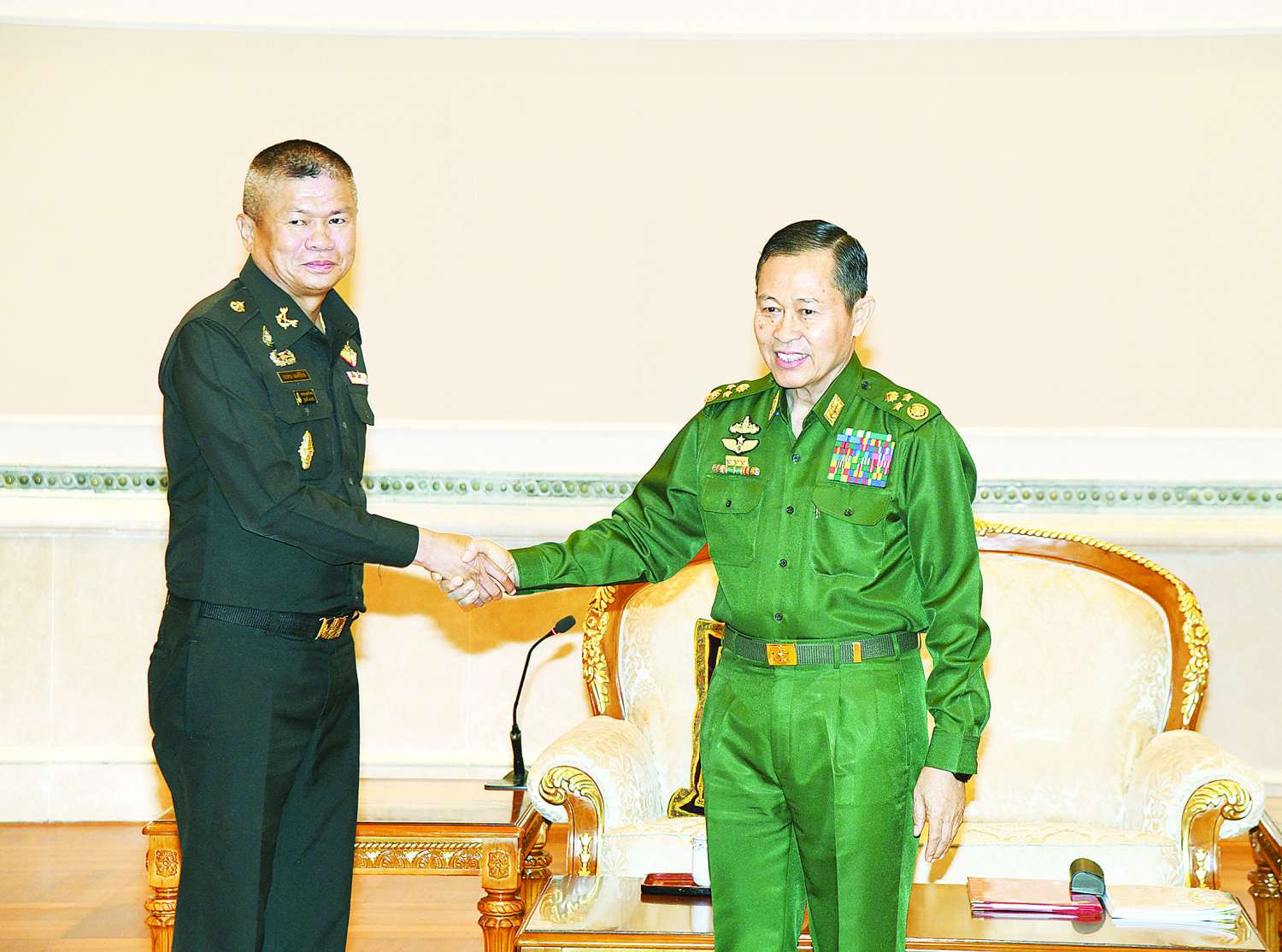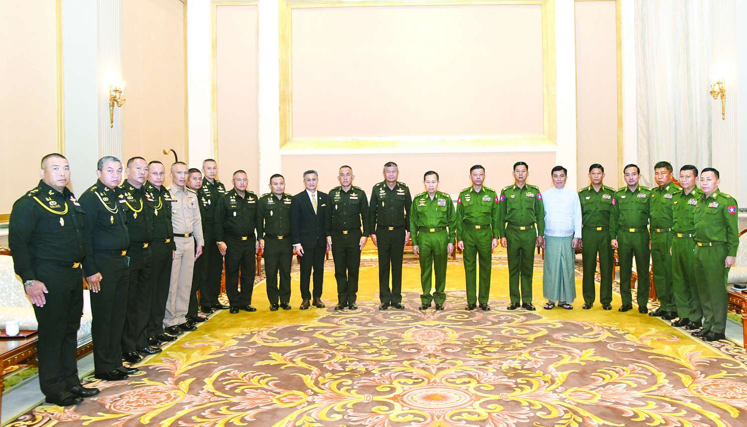 နိုင်ငံတော်စီမံအုပ်ချုပ်ရေးကောင်စီ ဒုတိယဥက္ကဋ္ဌ ဒုတိယတပ်မတော်ကာကွယ်ရေးဦးစီးချုပ် ကာကွယ်ရေးဦးစီးချုပ် (ကြည်း) ဒုတိယဗိုလ်ချုပ်မှူးကြီး စိုးဝင်းအား မြန်မာနိုင်ငံက အိမ်ရှင်အဖြစ် လက်ခံကျင်းပပြုလုပ်သော (၃၆) ကြိမ်မြောက် မြန်မာ - ထိုင်းဒေသဆိုင်ရာ နယ်ခြားကော်မတီအစည်းအဝေးသို့ တက်ရောက်ခဲ့သည့် ထိုင်းကိုယ်စားလှယ်အဖွဲ့ခေါင်းဆောင် Lt.Gen. Prasan Saengsirirak ဦးဆောင်သည့် ကိုယ်စားလှယ်အဖွဲ့က ယနေ့မွန်းလွဲပိုင်းတွင် နေပြည်တော်ရှိ ဇေယျာသီရိဗိမာန် ဧည့်ခန်းမဆောင်၌ လာရောက်ဂါရဝပြုတွေ့ဆုံသည်။