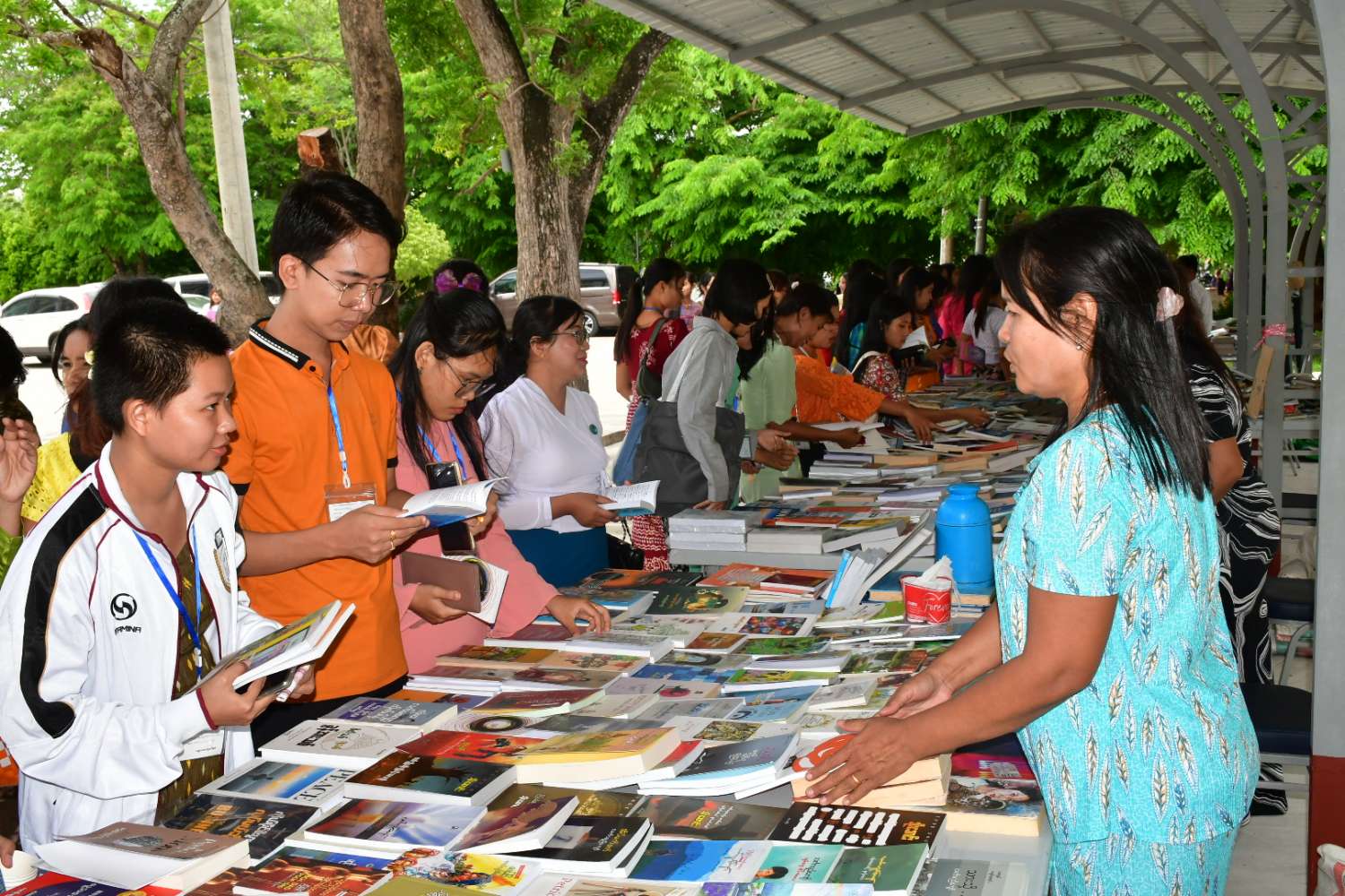 ဆက်လက်၍ ကျောင်းသား၊ ကျောင်းသူများနှင့် တက်ရောက်လာကြသူများက ဘက်စုံသုံးခန်းမရှေ့၌ ပြည်ခရိုင် ပြန်ကြားရေးနှင့်ပြည်သူ့ဆက်ဆံရေးဦးစီးဌာနမှ ခင်းကျင်းပြသထားသော စာကြည့်တိုက်များဖွံ့ဖြိုးတိုးတက်ရေးနှင့် စာဖတ်ရှိန်မြှင့်တင်ရေးဆိုင်ရာ အသိပညာပေးနံရံကပ်စာစောင်၊ ဓာတ်ပုံမှတ်တမ်းများနှင့် သီရေတာရှေ့ရှိ စာအုပ်ဈေးအရောင်းဆိုင်များမှ သုတ/ရသစာအုပ်စာစောင်များကို ကြည့်ရှုလေ့လာ/ဝယ်ယူဖတ်ရှုကြကြောင်း သိရသည်။