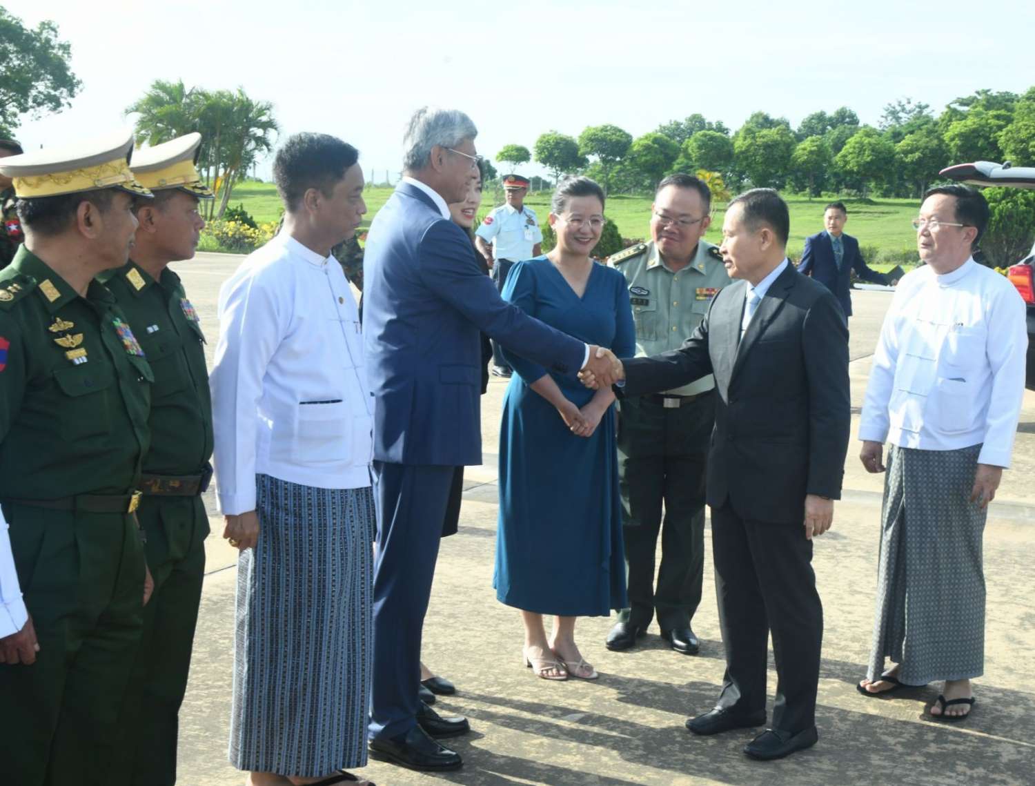 နိုင်ငံတော်စီမံအုပ်ချုပ်ရေးကောင်စီဒုတိယဥက္ကဋ္ဌ ဒုတိယဝန်ကြီးချုပ်ဦးဆောင်သော ကိုယ်စားလှယ်အဖွဲ့အား နိုင်ငံတော်စီမံအုပ်ချုပ်ရေးကောင်စီအတွင်းရေးမှူး ဒုတိယဗိုလ်ချုပ်ကြီးအောင်လင်းဒွေး၊ ကောင်စီအဖွဲ့ဝင် ဒုတိယဝန်ကြီးချုပ်နှင့် ကာကွယ်ရေးဝန်ကြီးဌာန ပြည်ထောင်စုဝန်ကြီး ဗိုလ်ချုပ်ကြီးတင်အောင်စန်း၊ ကောင်စီအဖွဲ့ဝင် ဦးဝဏ္ဏမောင်လွင်၊ နိုင်ငံတော်စီမံအုပ်ချုပ်ရေး ကောင်စီဥက္ကဋ္ဌရုံးဝန်ကြီးဌာန (၁) ပြည်ထောင်စုဝန်ကြီး ဗိုလ်ချုပ်ကြီးမိုးအောင်၊ စိုက်ပျိုးရေး၊ မွေးမြူရေးနှင့်ဆည်မြောင်းဝန်ကြီးဌာန ပြည်ထောင်စုဝန်ကြီးဦးမင်းနောင်၊ ကာကွယ်ရေးဦးစီးချုပ်ရုံးမှ အဆင့်မြင့်တပ်မတော်အရာရှိကြီးများ၊ နေပြည်တော်တိုင်းစစ်ဌာနချုပ်တိုင်းမှူး၊ ဒုတိယဝန်ကြီးများနှင့် မြန်မာနိုင်ငံဆိုင်ရာ တရုတ်နိုင်ငံသံရုံးမှ တာဝန်ရှိသူများက နေပြည်တော်လေဆိပ်၌ ပို့ဆောင်နှုတ်ဆက်ကြသည်။