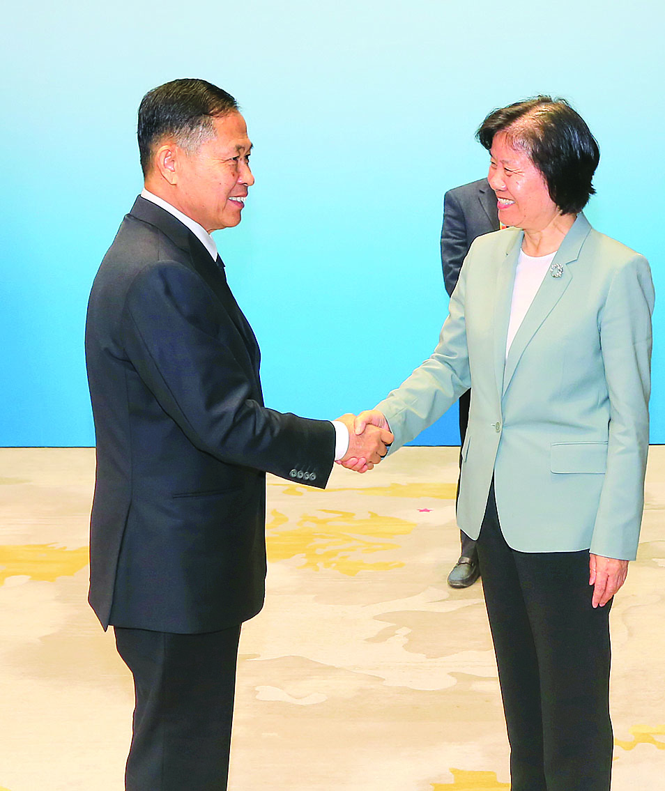 တွေ့ဆုံစဉ် ငြိမ်းချမ်းစွာအတူယှဉ်တွဲနေထိုင်ရေးမူကြီး (၅) ရပ်ကိုအခြေခံ၍ ဆွေမျိုးပေါက်ဖော်ဆက်ဆံရေးကို တိုးတက်အောင်ဆောင်ရွက်လျက်ရှိသည့် အခြေအနေ၊ နှစ်နိုင်ငံမိတ်ဖက်ဆက်ဆံရေးနှင့် ဘက်စုံမဟာဗျူဟာမြောက် ပူးပေါင်းဆောင်ရွက်မှုတိုးမြှင့်ရေး၊ နှစ်နိုင်ငံနယ်စပ်ဒေသတည်ငြိမ်အေးချမ်းရေးနှင့် သက်ဆိုင်ရာစီမံကိန်းလုပ်ငန်းများ အကောင်အထည်ဖော်ဆောင်ရွက်နိုင်ရန် လုံခြုံရေးအပြည့်အဝရရှိရေး ပူးပေါင်းဆောင်ရွက်သွားမည့် အခြေအနေများ၊ တရားမဝင်နယ်စပ်ဖြတ်ကျော်မှု၊ အွန်လိုင်းလောင်းကစားများ ပပျောက်ရေးနှင့် မူးယစ်ဆေးဝါးကာကွယ်တားဆီးရေးဆိုင်ရာ လုပ်ငန်းများနှင့်ပတ်သက်၍ နှစ်နိုင်ငံသတင်းအချက်အလက် ဖလှယ်ရယူရေးဆိုင်ရာကိစ္စရပ်များ၊ နှစ်နိုင်ငံကုန်သွယ်မှု တိုးမြှင့်ဖော်ဆောင်နိုင်ရေးကြိုးပမ်းဆောင်ရွက်လျက်ရှိမှု၊ နှစ်နိုင်ငံစီးပွားရေးဆိုင်ရာ ပူးပေါင်းဆောင်ရွက်မှုနှင့် ရင်းနှီးမြှုပ်နှံမှုတိုးမြှင့်ဖော်ဆောင်ရေး၊ နိုင်ငံတော်စီမံအုပ်ချုပ်ရေးကောင်စီအနေဖြင့် ရှေ့လုပ်ငန်းစဉ်(၅)ရပ်ကို အောင်မြင်အောင် အကောင်အထည်ဖော်ဆောင်ရွက်လျက်ရှိပြီး ပါတီစုံဒီမိုကရေစီအထွေထွေရွေးကောက်ပွဲ အောင်မြင်စွာကျင်းပနိုင်ရေး ကြိုးပမ်းဆောင်ရွက်နေမှုအခြေအနေများနှင့်ပတ်သက်၍ ရင်းနှီးပွင့်လင်းစွာ အမြင်ချင်းဖလှယ်ဆွေးနွေးကြသည်။