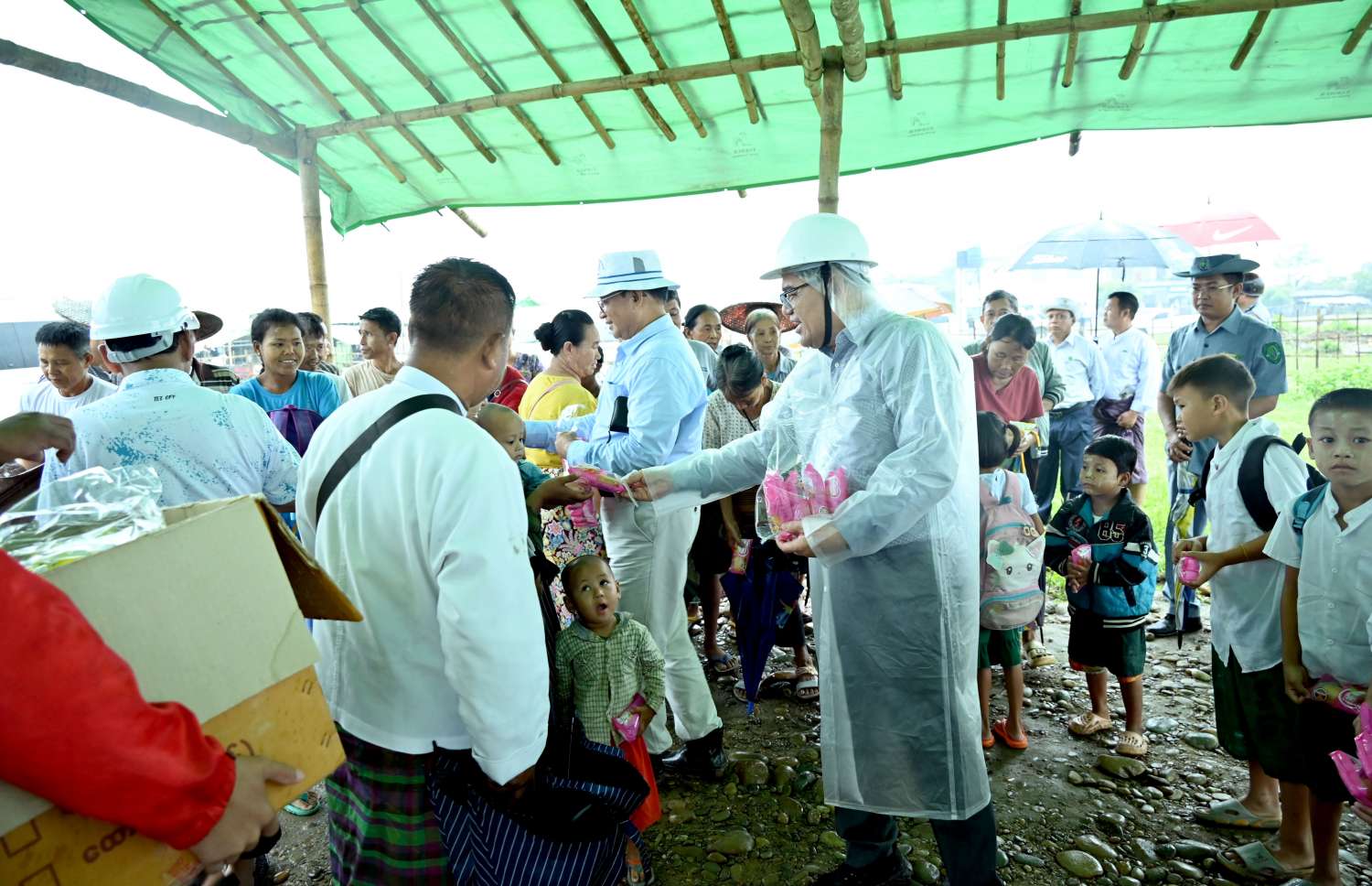 ထိုမှတစ်ဆင့် ပြည်နယ်ဝန်ကြီးချုပ်နှင့် အဖွဲ့ဝင်များသည် ဝိုင်းမော်မြို့ အမှတ်(၅)ရပ်ကွက်အတွင်း ရေကြီးရေလျှံမှုဖြစ်ပွားခဲ့သည့် ယာယီတိမ်းရှောင်စခန်းသို့ သွားရောက်ပြီး အိမ်ထောင်စုများအတွက် ငါးသေတ္တာဘူးများ၊ ခေါက်ဆွဲခြောက်ဖာများ၊ ကြက်ဥများ၊ သွားတိုက်တံနှင့် သွားတိုက်ဆေးများ၊ ကျောင်းသုံးဗလာစာအုပ်များကို ထောက်ပံ့ပေးအပ်ခဲ့ကြပြီး ကျောင်းသားကလေးများနှင့် မိသားစုများအား မုန့်များကို လိုက်လံဝေငှကျွေးမွေးခဲ့ကြသည်။