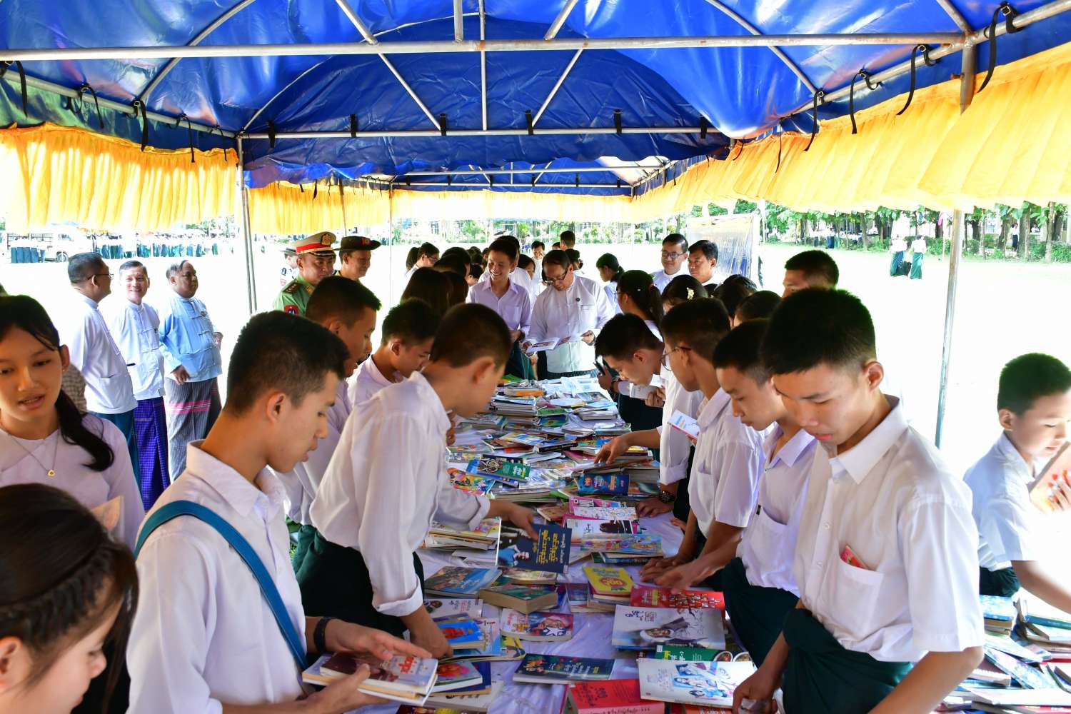 ထို့နောက် ကျောင်းစာကြည့်တိုက်များ ဖွံ့ဖြိုးတိုးတက်ရေးနှင့် စာဖတ်ရှိန်မြှင့်တင်ရေးပွဲတော် အခမ်းအနားကို အဆိုပါအထက်တန်းကျောင်း ရွှေရတုခန်းမ၌ ဆက်လက်ကျင်းပရာ ပြည်နယ်ဝန်ကြီးချုပ်နှင့် တက်ရောက်လာသူများက သုတဝေဖြာမျှဝေရာ ပညာဘဏ်တိုက် စာကြည့်တိုက် Video Clip ကို ကြည့်ရှုခဲ့ကြပြီး ပြည်နယ်ဝန်ကြီးချုပ်က ကျောင်းသားလူငယ်များသည် နိုင်ငံ၏မျိုးဆက်သစ်များ၊ အရေးပါသည့် အဖိုးတန်လူသား အရင်းအမြစ်များ၊ အနာဂတ် နိုင်ငံတော်ဖွံ့ဖြိုးတိုးတက်ရေးဆောင်ရွက်ရာတွင် ပါဝင်ဆောင်ရွက်ကြရမည့်သူများဖြစ်သည့်အတွက် အသိပညာ ဗဟုသုတ ဉာဏ်ပညာကြွယ်ဝသူများဖြစ်ရန်လိုအပ်ကာ အကောင်းဆုံးနှင့်အရိုးရှင်းဆုံးနည်းလမ်းမှာ စာပေဖတ်ရှုလေ့လာခြင်းပင်ဖြစ်ကြောင်း၊ စာအုပ်စာပေများ ရရှိနိုင်သည့် စာကြည့်တိုက်များသို့ သွားရောက်စာဖတ်ကြသည့်ဓလေ့၊ ဝင်ထွက်သွားလာသည့် အလေ့အကျင့်ကောင်းများကို မွေးမြူနိုင်မှသာ အသက်အရွယ်ကြီးရင့်လာချိန်တွင် စာဖတ်သည့် အလေ့အထများ စွဲမြဲလာမည်ဖြစ်ပြီး သို့မှသာစာကြည့်တိုက်ယဉ်ကျေးမှုထွန်းကား၍ စာကြည့်တိုက်များ ရေရှည်ဖွံ့ဖြိုးတိုးတက်လာမည်ဖြစ်ကြောင်း ပြောကြားသည်။