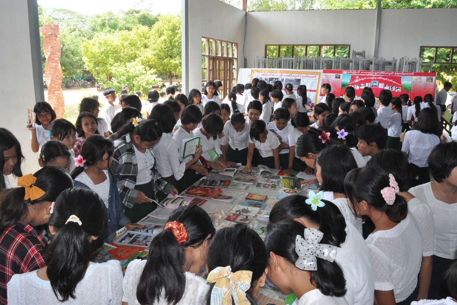 ယင်းနောက် အမှတ်(၃) အခြေခံပညာအထက်တန်းကျောင်းမှ ကျောင်းသား/သူများက စကားရည်လုပြိုင်ပွဲ၊ ကျပန်းစကားပြောပြိုင်ပွဲ၊ ကလေးငယ်များအား ကဗျာများရွတ်ဖတ်ကြားစေခြင်း၊ စာအုပ်ပြပွဲ၊ နံရံကပ်စာစောင်များပြသခြင်းနှင့် ကျောင်းစာကြည့်တိုက်အတွင်း စာပေဖတ်မှတ်လေ့လာနေသော ကျောင်းသား/သူများအား စာကြည့်တိုက်ကြီးကြပ်မှုကော်မတီဥက္ကဋ္ဌနှင့် အဖွဲ့ဝင်များက ကြည့်ရှုအားပေးခဲ့ကြကြောင်း သိရသည်။