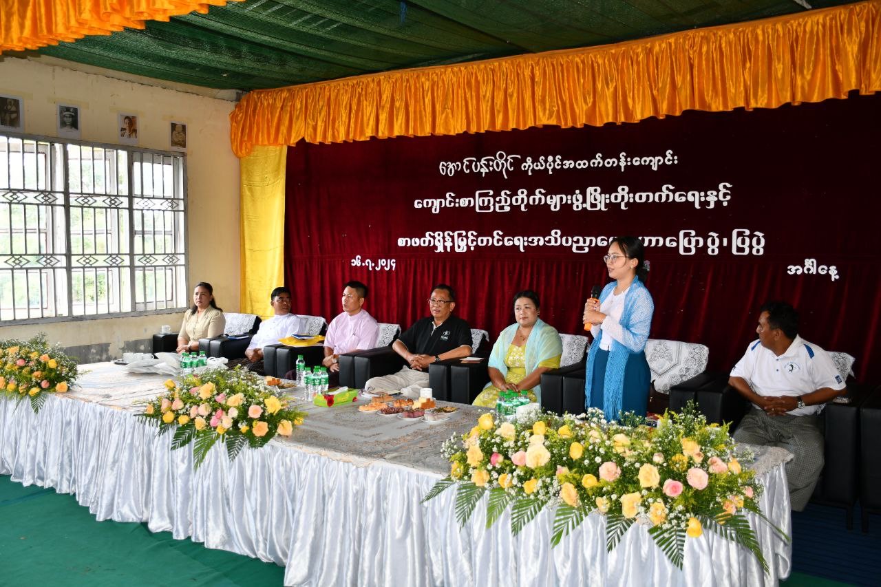 ဆက်လက်၍ ပြင်ဦးလွင်ခရိုင် အိမ်ခြံမြေဖွံ့ဖြိုးတိုးတက်ရေးအသင်းမှ ခရိုင်ဥက္ကဋ္ဌ ဦးမျိုးမင်းက လူငယ်နှင့်ရာဇဝင်ထဲကမှတ်သားဖွယ်ရာများ ခေါင်းစဉ်ဖြင့် လည်းကောင်း၊ ဗမာလူမျိုးစာပေနှင့် ယဉ်ကျေးမှုအသင်း ပြင်ဦးလွင်ခရိုင် ဒုတိယဥက္ကဋ္ဌ ဒေါ်အေဇင်မေက ဗမာလူမျိုးစာပေနှင့် ယဉ်ကျေးမှုထိန်းသိမ်းစောင့်ရှောက်ရေးဆိုင်ရာများ ဟောပြောဆွေးနွေးသည်။ ပြင်ဦးလွင်ခရိုင် စာကြည့်တိုက်ကြီးကြပ်မှုကော်မတီအဖွဲ့ဝင် စာရေးဆရာ ကိုရွှေအောင်သင်းက “ အနာဂတ်ကို ပိုင်စိုးမည့်သူများ ” ခေါင်းစဉ်ဖြင့် ဒေသခံပြည်သူများ စာပေဗဟုသုတဖြစ်ဖွယ်အကြောင်းအရာ များကို ဟောပြောဆွေးနွေးသည်။ ထို့နောက် ဆွေးနွေးချက်များအပေါ် မေးခွန်းများပြန်လည် မေးမြန်းရာ ပြန်လည်ဖြေဆိုဆွေးနွေးနိုင်ကြသော ကျောင်းသား၊ ကျောင်းသူများအား အိမ်ခြံမြေ ဖွံ့ဖြိုးတိုးတက်ရေးအသင်းမှ ခရိုင်ဥက္ကဋ္ဌ၊ မြို့နယ်ဥက္ကဋ္ဌ ဦးဇော်မြင့်နှင့်ဘဏ္ဍာရေးမှူး ဒေါ်စောမိုးမိုးသန်းတို့က အမှတ်တရဂုဏ်ပြုလက်ဆောင်များ ပေးအပ်ချီးမြှင့်ပြီး စာရေးဆရာ ကိုရွှေအောင်သင်းက အောင်ပန်းတိုင်ကိုယ်ပိုင်ကျောင်းစာကြည့်တိုက်အတွက် စာအုပ်များ ပေးအပ်လှူဒါန်းရာ တာဝန်ခံဆရာမ ဒေါ်လွင်မျိုးထွန်းက လက်ခံရယူသည်။