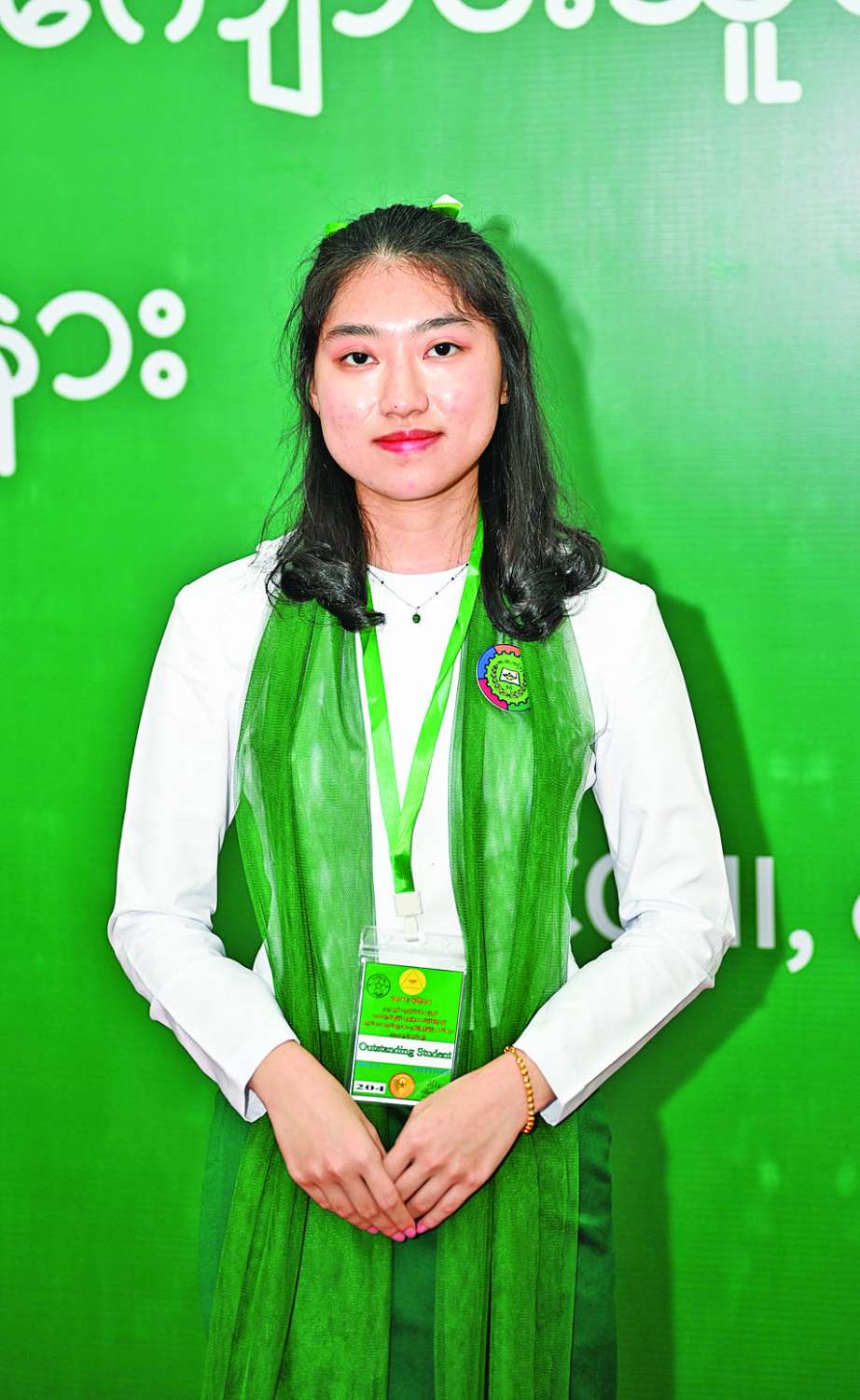 ၂၀၂၃-၂၀၂၄ ခုနှစ် တက္ကသိုလ်ဝင်စာမေးပွဲ သိပ္ပံဘာသာတွဲမှာ မြန်မာတစ်နိုင်ငံလုံးအနေနဲ့ရမှတ် အများဆုံး ဒုတိယဆုရရှိထားတာ ဖြစ်ပါတယ်။ ရန်ကုန်တိုင်းဒေသကြီး အ.ထ.က(၁) ဒဂုံကျောင်းမှာ ပညာသင်ကြားခဲ့ပါတယ်။ ကျွန်မကြိုးစားပြီးရခဲ့တဲ့ရလဒ်ကို အသိအမှတ်ပြုဂုဏ်ပြုပွဲကို တက်ရောက်ရတဲ့အတွက် အတိုင်းမသိ ဂုဏ်ယူဝမ်းမြောက်မိပါတယ်။ KG+12 စနစ်သစ်ဖြစ်တဲ့အတွက် မေးခွန်းဟောင်းလည်း မရှိခဲ့တဲ့အတွက် သေသေချာချာ လေ့လာမှတ်သား ကြိုးစားခဲ့ရပါတယ်။ နားမလည်တဲ့ သင်ခန်းစာတွေဆိုရင်လည်း ဆရာဆရာမတွေကို မေးမြန်းပြီးလေ့ကျင့်ပါတယ်။ တစ်နေ့စာတစ်နေ့ကိုလည်း ပြတ်အောင် လေ့ကျင့်ပါတယ်။ ကျန်းမာရေးကိုလည်း အထူးဂရုစိုက်ပြီး လေ့ကျင့်ခဲ့တဲ့အတွက် အခုလိုထူးချွန်ခဲ့တာဖြစ်ပါတယ်။ ကျွန်မရဲ့ရည်မှန်းချက်ကတော့ ဆရာဝန်ကောင်း တစ်ယောက်ဖြစ်ချင်ပါတယ်။ နိုင်ငံတော်နဲ့ ပြည်သူပြည်သားတွေရဲ့ ကျန်းမာရေးကို ကာကွယ်စောင့်ရှောက်ပေးနိုင်တဲ့ ထူးချွန်တဲ့ဆရာဝန်ကောင်း တစ်ယောက်ဖြစ်အောင် ကြိုးစားသွားမယ်လို့ ရည်မှန်းထားပါတယ်။ မောင်လေး၊ ညီမလေးတို့ကို ပြောချင်တာကတော့ စနစ်သစ် ဖြစ်တဲ့အတွက် အထူးဂရုစိုက်ရမယ်လို့ ပြောချင်ပါတယ်။ ကံ၊ ဉာဏ်၊ ဝီရိယတို့ကို ပေါင်းစည်းပြီးတော့ တစိုက်မတ်မတ်နဲ့ ကြိုးစားသွားမယ်ဆိုရင် ကိုယ့်ရဲ့အောင်မြင်မှုနဲ့ထိုက်တန်တဲ့ အသီးအပွင့်အောင်မြင်မှုတွေကိုရရှိမှာ ဖြစ်ပါတယ်လို့ ပြောချင်ပါတယ်။