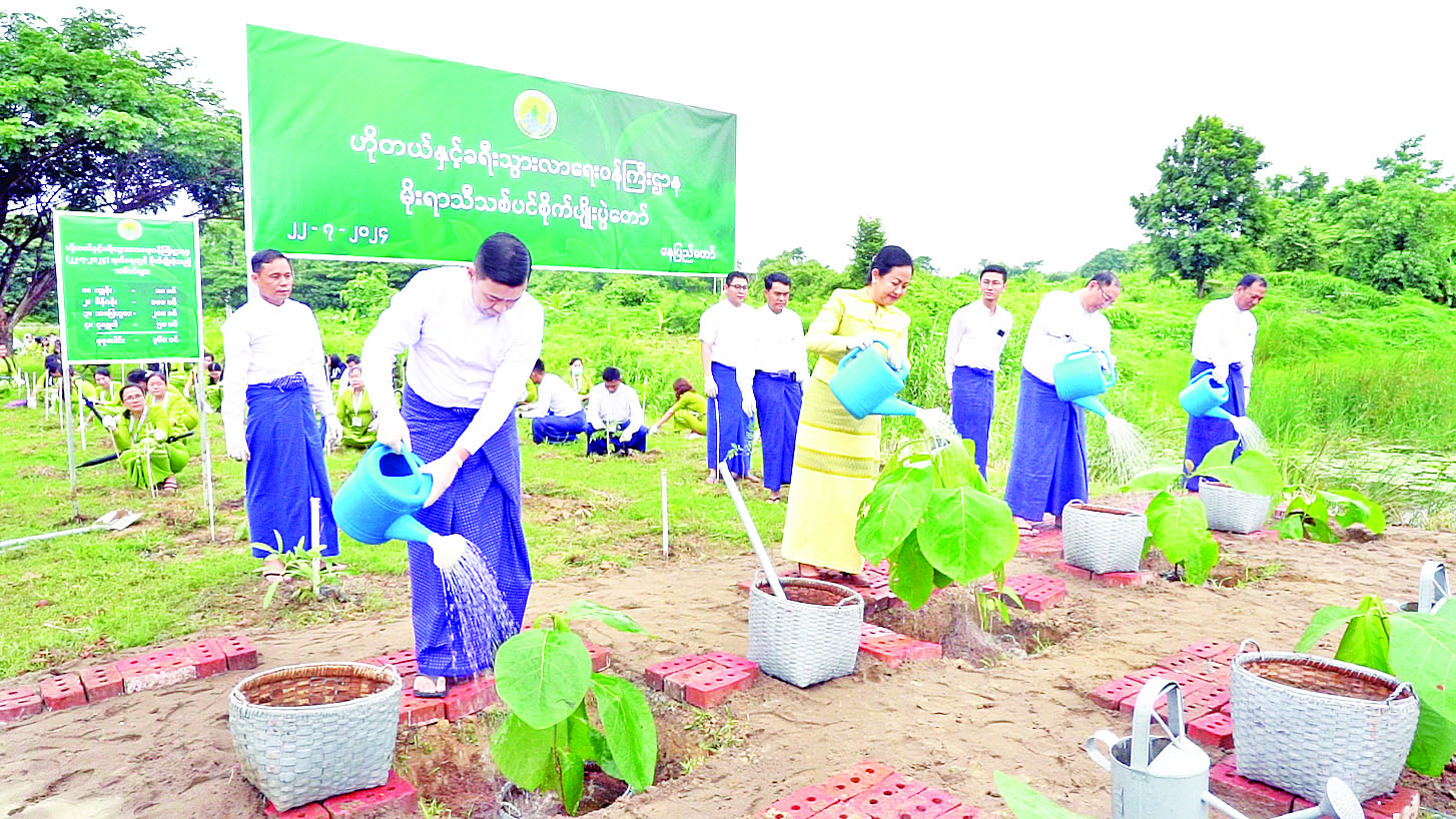 ဟိုတယ်နှင့်ခရီးသွားလာရေးဝန်ကြီးဌာန ၂၀၂၄ ခုနှစ် မိုးရာသီသစ်ပင်စိုက်ပျိုးပွဲကို ယနေ့ညနေပိုင်းက နေပြည်တော်ကောင်စီနယ်မြေ ဇမ္ဗူသီရိမြို့နယ် ဝဏ္ဏသိဒ္ဓိအားကစားကွင်းအနီး မြင်းစီးအားကစားကွင်းအတွင်း၌ ကျင်းပသည်။