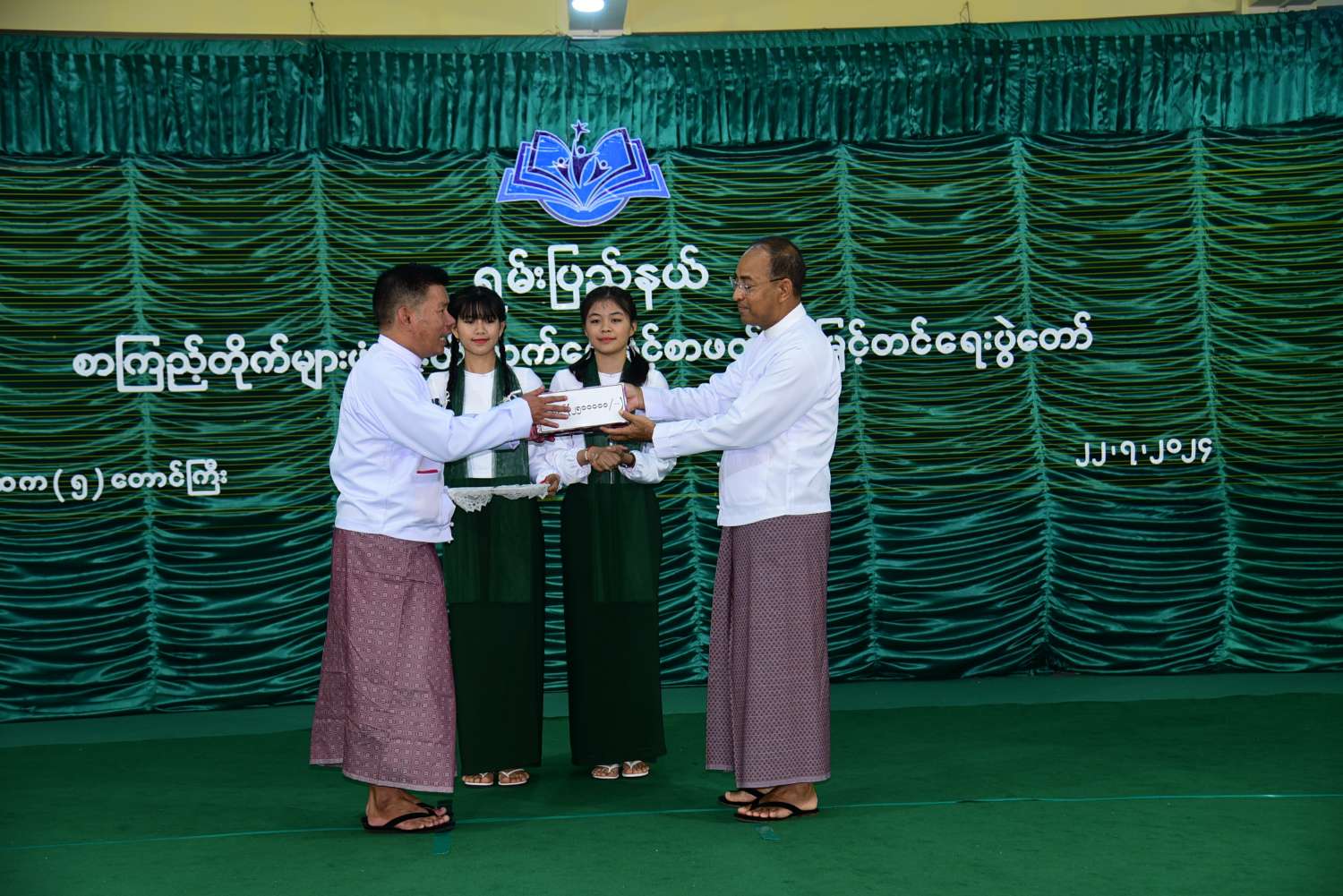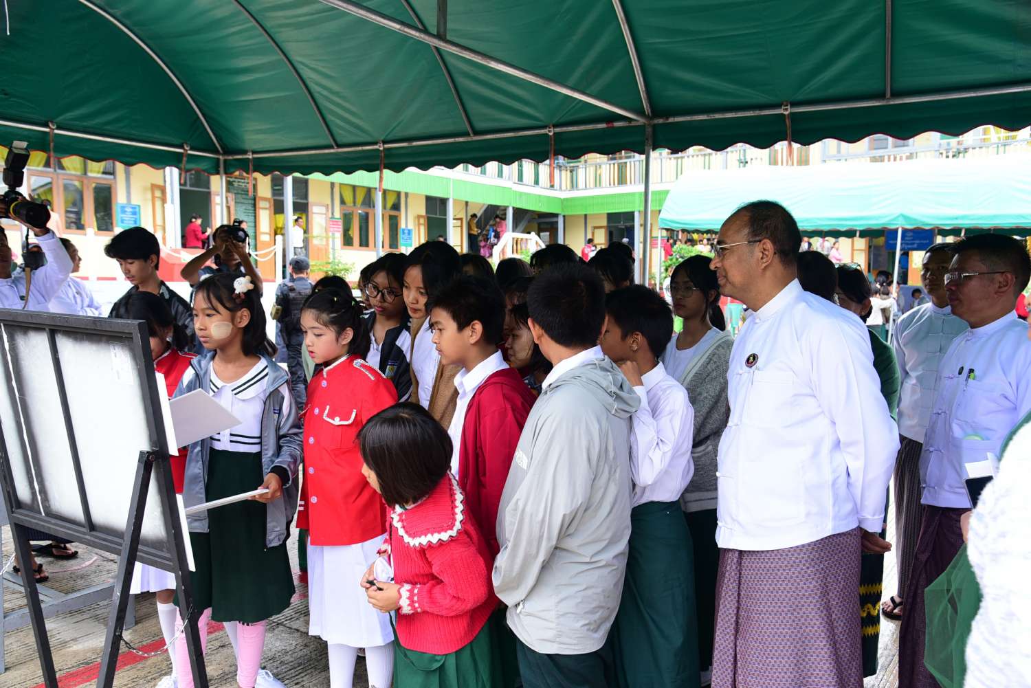ထို့နောက် အမှတ်(၅) အခြေခံပညာအထက်တန်းကျောင်းမှ ကျောင်းသား၊ ကျောင်းသူလေးများမှ စည်းလုံးခြင်းအတွက် သီချင်းတစ်ပုဒ်တေးသီချင်းနှင့် ဦးရွှေရိုး ဒေါ်မိုးအက၊ စာဖတ်စို့ တေးသီချင်းဖြင့် ကပြဖျော်ဖြေကြပြီး ပြည်နယ်ဝန်ကြီးချုပ် ဦးအောင်အောင်က ကပြဖျော်ဖြေပေးသော ကျောင်းသား ၊ကျောင်းသူများအား ဂုဏ်ပြုချီးမြှင့်ငွေ ပေးအပ်ခဲ့သည်။