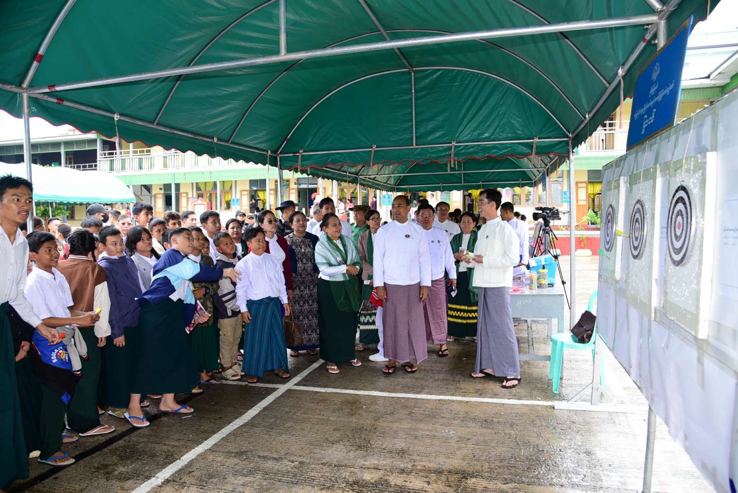 ၎င်းနောက် ပြည်ဝန်ကြီးချုပ်၊ ပြည်နယ်တရားလွှတ်တော် တရားသူကြီးချုပ်၊ ပြည်နယ်ဝန်ကြီးများ၊ ပြည်နယ်ဥပဒေချုပ်၊ ပြည်နယ်၊ ခရိုင်၊ မြို့နယ်အဆင့်ဌာနဆိုင်ရာများနှင့် တာဝန်ရှိသူတို့သည် စာအုပ်နှင့် ဓာတ်ပုံပြခန်း၊ ကျောင်းသား၊ ကျောင်းသူများမှ သိပ္ပံပြခန်း၊ ဖတ်မှတ်စွမ်းရည်ပြိုင်ပွဲ၊ စာဖတ်စွမ်းရည်ပြိုင်ပွဲ၊ ကျပန်းစကားပြောပြိုင်ပွဲ၊ စာစီစာကုံးပြိုင်ပွဲ၊ ကဗျာရွတ်ဆိုပြိုင်ပွဲ၊ စာပေဗိမာန် စာအုပ်အရောင်းဆိုင်၊ ကျောင်းသား၊ ကျောင်းသူများမှ ရုပ်ပုံဆက်၊ စကားလုံးဆက်၊ မြားပစ်၊ စက်ဝိုင်းလှည့်၊ ခါးလှည့်ပြိုင်ပွဲ၊ ခုံဖိနပ်စီးပြိုင်ပွဲ၊ ခွက်နင်းပြိုင်ပွဲများအား လှည့်လည်ကြည့်ရှု အားပေးခဲ့ကြသည်။