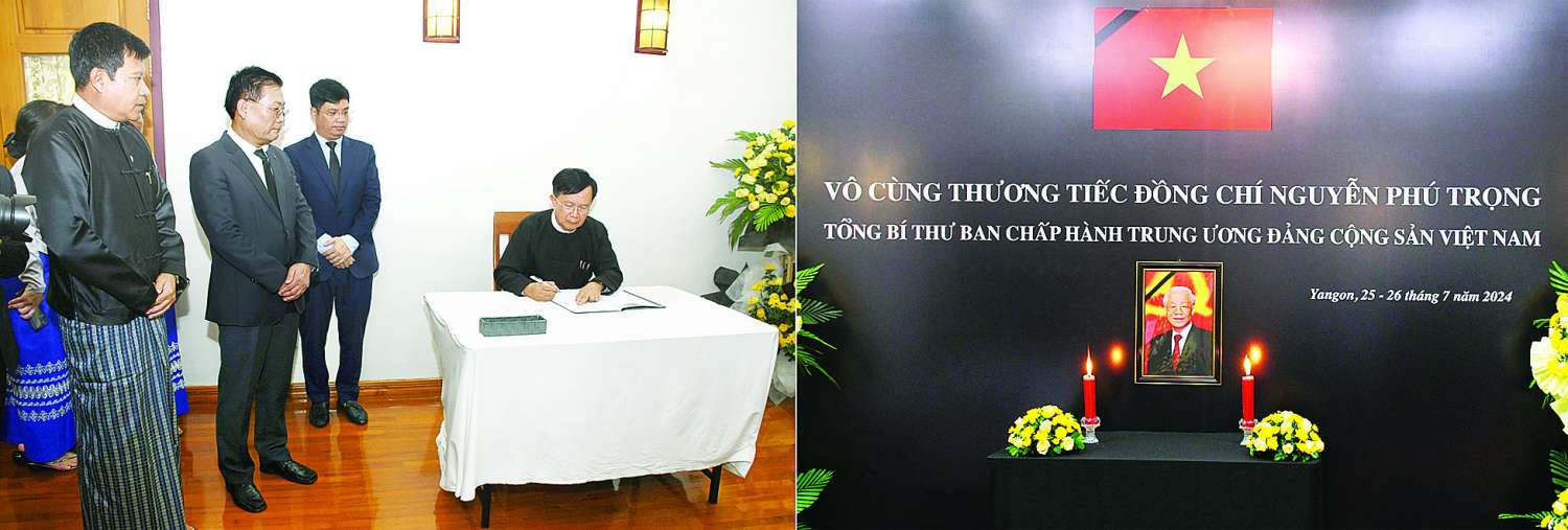 ထို့နောက် နိုင်ငံတော်စီမံအုပ်ချုပ်ရေးကောင်စီအတွင်းရေးမှူးသည် ဗီယက်နမ်သံရုံးမှ သံအမတ်ကြီး၊ စစ်သံမှူးနှင့် တာဝန်ရှိသူများအား သံရုံးဧည့်ခန်းမ၌ ခင်မင်ရင်းနှီးစွာတွေ့ဆုံ၍ ဗီယက်နမ်ကွန်မြူနစ်ပါတီအထွေထွေအတွင်းရေးမှူး ကွယ်လွန်ခဲ့ခြင်းအပေါ် နိုင်ငံတော်စီမံအုပ်ချုပ်ရေးကောင်စီဥက္ကဋ္ဌ၏ ဝမ်းနည်းကြောင်း၊ စာနာထောက်ထားကြောင်း သတင်းစကားအား နှစ်ဦးနှစ်ဖက်အပြန်အလှန်ပြောကြားခဲ့ပြီး ဝမ်းနည်းခြင်းအထိမ်းအမှတ်စာအုပ်၌ လက်မှတ်ရေးထိုးခဲ့ကြောင်း သတင်းရရှိသည်။