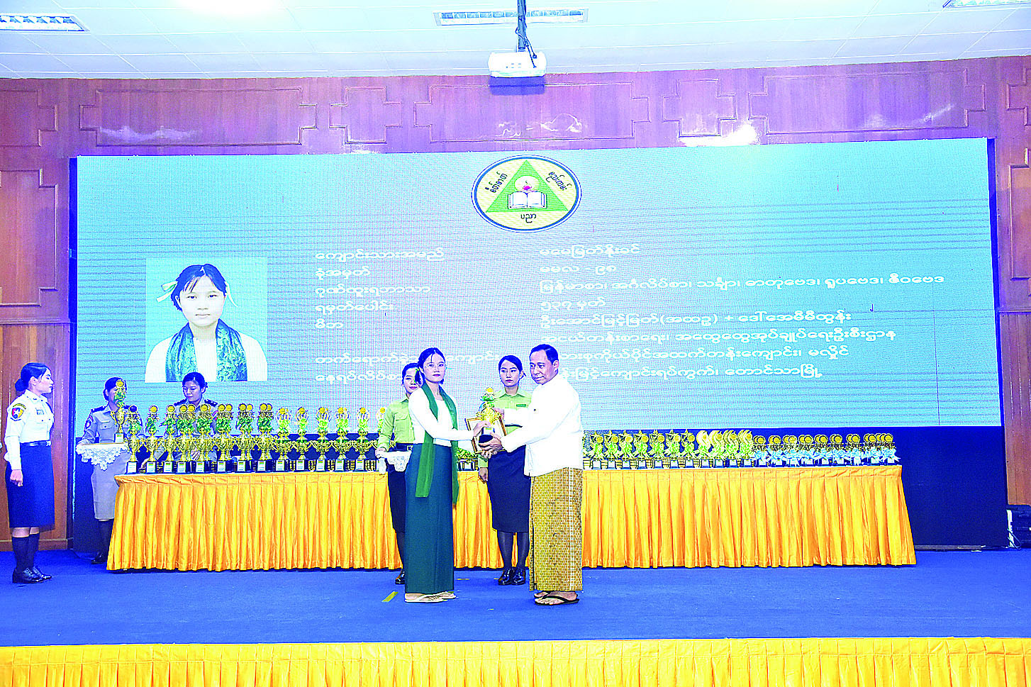 ပြည်ထဲရေးဝန်ကြီးဌာန ၂၀၂၃ - ၂၀၂၄ ပညာသင်နှစ် တက္ကသိုလ်ဝင်စာမေးပွဲတွင် ထူးချွန်စွာ အောင်မြင်ခဲ့ကြသော ပြည်ထောင်စုဝန်ကြီးရုံးနှင့် တပ်ဖွဲ့/ ဦးစီးဌာနများမှ တပ်ဖွဲ့ဝင်/ ဝန်ထမ်းများ၏ သား/သမီး၊ ကျောင်းသား/ကျောင်းသူများအား ဂုဏ်ပြုချီးမြှင့်ခြင်း အခမ်းအနားကို ယနေ့နံနက်ပိုင်းတွင် နေပြည်တော်ရှိ အဆိုပါဝန်ကြီးဌာန၌ ကျင်းပသည်။