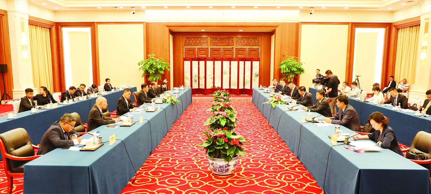 ဒုတိယဝန်ကြီးချုပ်နှင့် နိုင်ငံခြားရေးဝန်ကြီးဌာန ပြည်ထောင်စုဝန်ကြီး ဦးသန်းဆွေနှင့် စီးပွားရေးနှင့် ကူးသန်းရောင်းဝယ်ရေးဝန်ကြီးဌာန ပြည်ထောင်စုဝန်ကြီး ဦးထွန်းအုံတို့ ဦးဆောင်သည့် မြန်မာကိုယ်စားလှယ်အဖွဲ့သည် တရုတ်ပြည်သူ့သမ္မတနိုင်ငံ ကူမင်းမြို့သို့ ရောက်ရှိစဉ် ဇူလိုင် ၂၃ ရက် ဒေသစံတော်ချိန် နံနက် ၁၁ နာရီက တျန်းချီ (Dianchi) အပြည်ပြည်ဆိုင်ရာကွန်ဗင်းရှင်းနှင့် ပြပွဲစင်တာရှိ အစည်းအဝေးခန်းမ၌ တရုတ်ပြည်သူ့သမ္မတနိုင်ငံ (၁၄) ကြိမ်မြောက် အမျိုးသားပြည်သူ့ ကွန်ဂရက်အမြဲတမ်းကော်မတီ ဒုတိယဥက္ကဋ္ဌ မစ္စတာ တင်းကျုံ့လီ ဦးဆောင်သည့် တရုတ်ကိုယ်စားလှယ်အဖွဲ့နှင့် နှစ်နိုင်ငံတွေ့ဆုံဆွေးနွေးမှု ပြုလုပ်ခဲ့သည်။