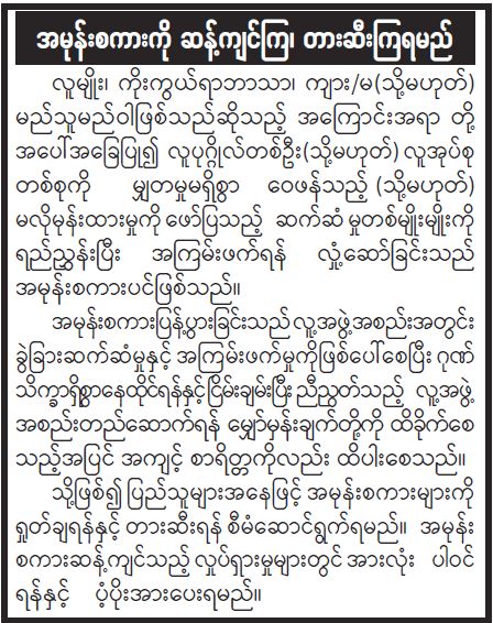 သို့ဖြစ်၍ ပြည်သူများအနေဖြင့် အမုန်းစကားများကို ရှုတ်ချရန်နှင့် တားဆီးရန် စီမံဆောင်ရွက်ရမည်။ အမုန်းစကားဆန့်ကျင်သည့် လှုပ်ရှားမှုများတွင် အားလုံးပါဝင်ရန်နှင့် ပံ့ပိုးအားပေးရမည်။
