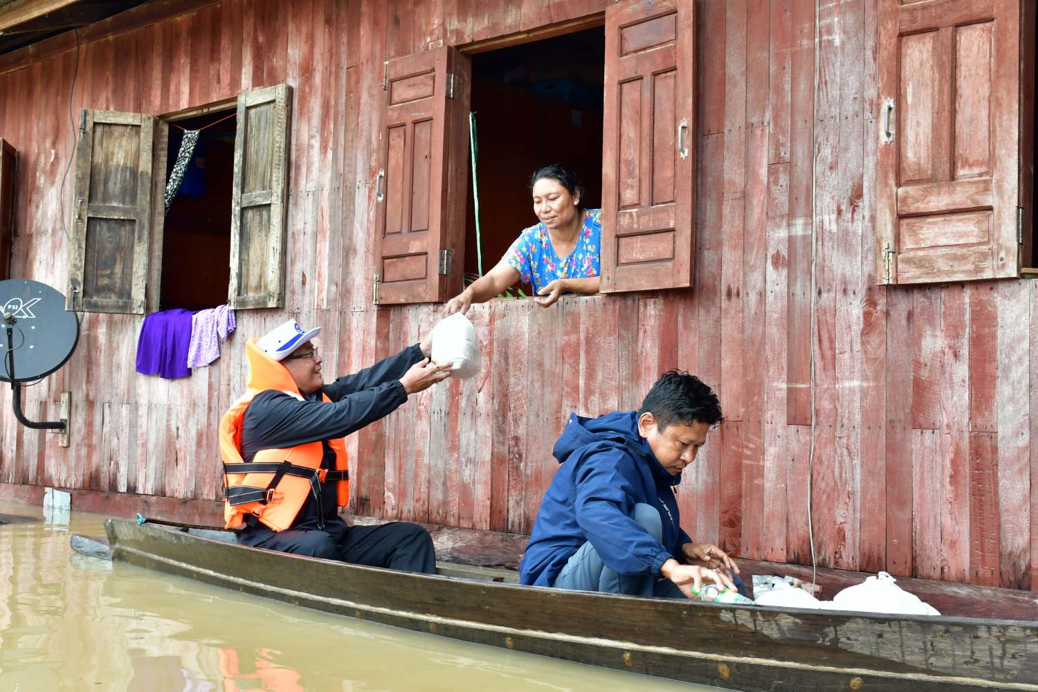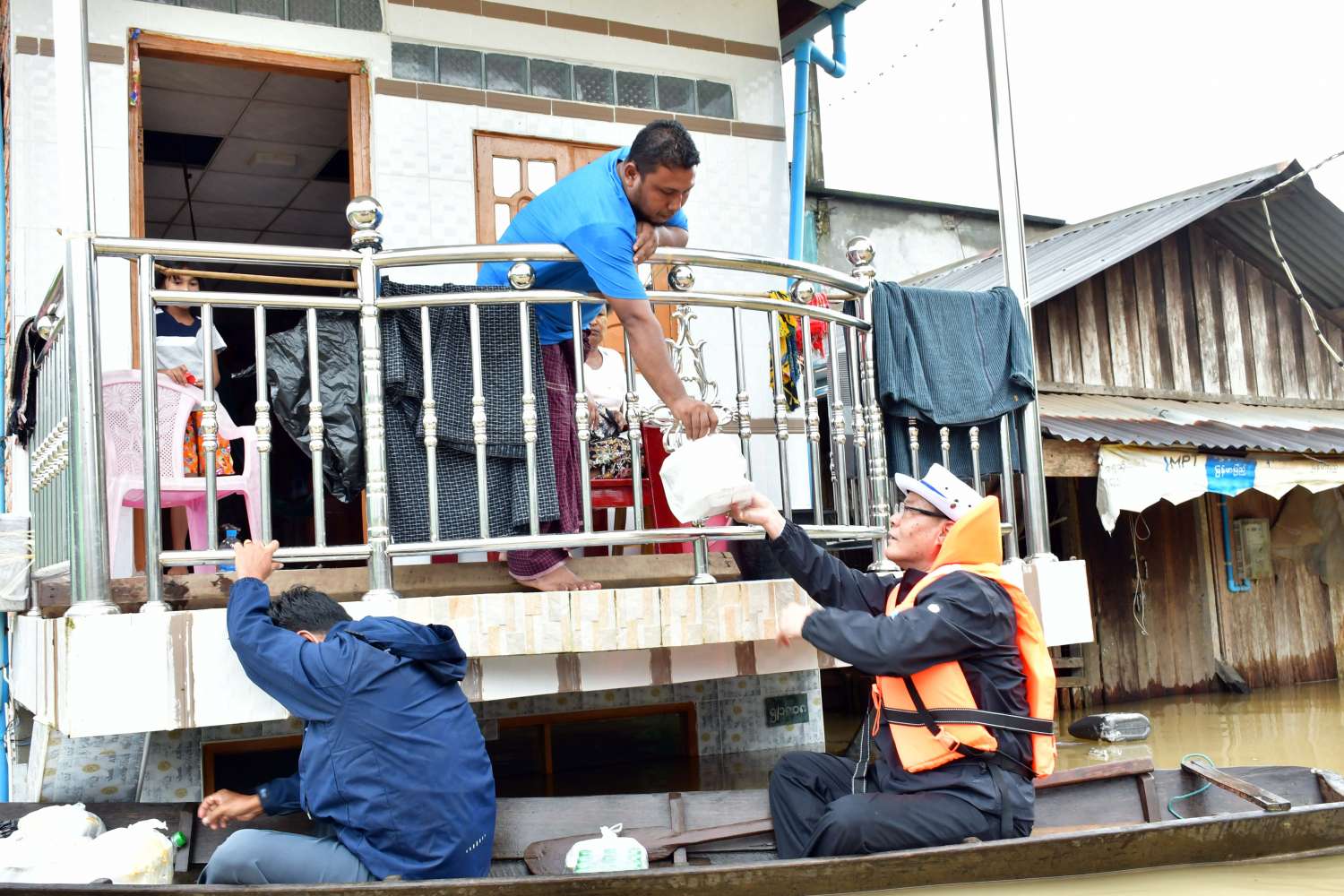 ဆက်လက်၍ ပြည်နယ်ဝန်ကြီးချုပ်နှင့်အဖွဲ့သည် သံလွင်မြစ်ရေစံချိန်တင်မြင့်တက်မှုကြောင့် လူနေအိမ်များ အတွင်းရေများဝင်ရောက်ခဲ့သော်လည်း ကယ်ဆယ်ရေးစခန်းများသို့ ပြောင်းရွှေ့နေထိုင်ခြင်းမရှိဘဲ ၎င်းတို့၏နေအိမ် များတွင်သာ ဆက်လက်နေထိုင်သော အိမ်ထောင်စုများအား နေ့လည်စာထမင်းဗူးများကို လိုက်လံဝေငှပေးရာ ဘားအံမြို့၊ အမှတ်(၅)ရပ်ကွက်နှင့် အမှတ်(၄)ရပ်ကွက်ရှိ အနိမ့်ပိုင်းနေရာများတွင် ပြောင်းရွှေ့နေထိုင်ခြင်းမရှိသော အိမ်ထောင်စုလူဦးရေအလိုက် ထမင်းဘူးများနှင့် ရေသန့်ဘူးများကို ပြည်နယ်ဝန်ကြီးချုပ်နှင့် အစိုးရအဖွဲ့ဝင်များကိုယ်တိုင် လှေငယ်များဖြင့် အိမ်တိုင်ရာရောက် လိုက်လံဝေငှပေးခဲ့ကြသည်။