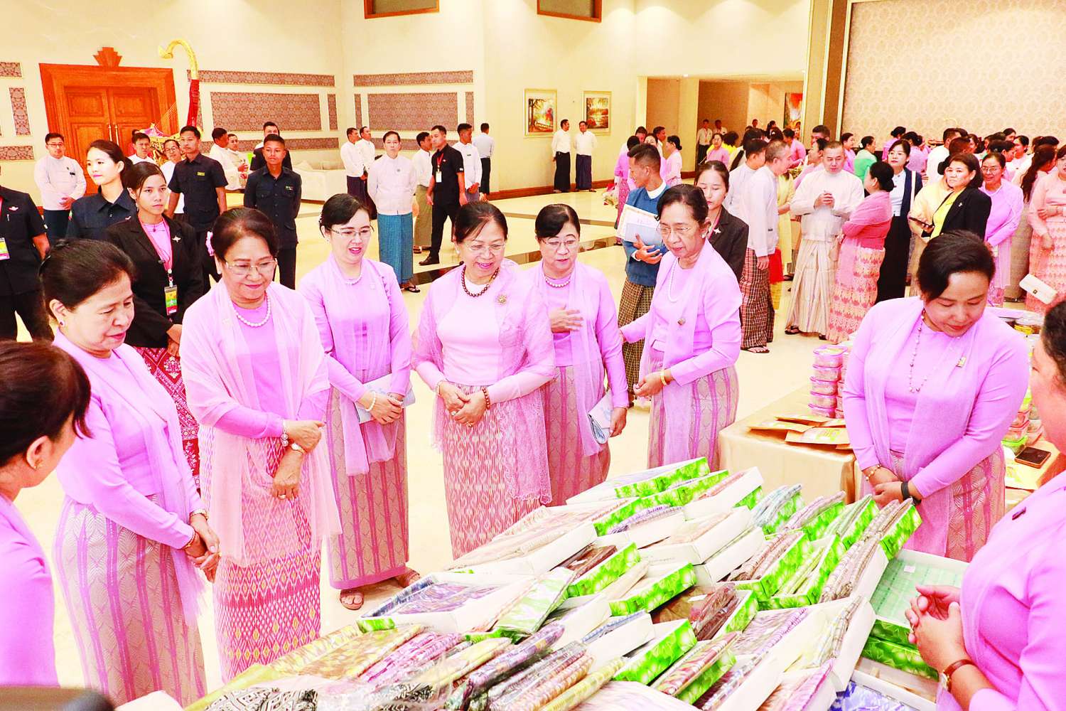 ထို့နောက် မြန်မာနိုင်ငံအမျိုးသမီးများနှင့် ကလေးသူငယ်များဘဝ မြှင့်တင်ရေးအသင်း၏ ဂုဏ်ထူးဆောင်နာယကများဖြစ်ကြသည့် ဒေါ်ကြူကြူလှနှင့် ဒေါ်ခင်သက်ဌေးတို့သည် အခမ်းအနားသို့တက်ရောက်လာကြသူများနှင့်အတူ စုပေါင်းမှတ်တမ်းတင်ဓာတ်ပုံရိုက်ပြီး ခင်းကျင်းပြသထားသည့် ဓာတ်ပုံမှတ်တမ်းပြခန်းနှင့် ထုတ်ကုန်ပစ္စည်းများကို ကြည့်ရှုလေ့လာ အားပေးခဲ့ကြသည်။