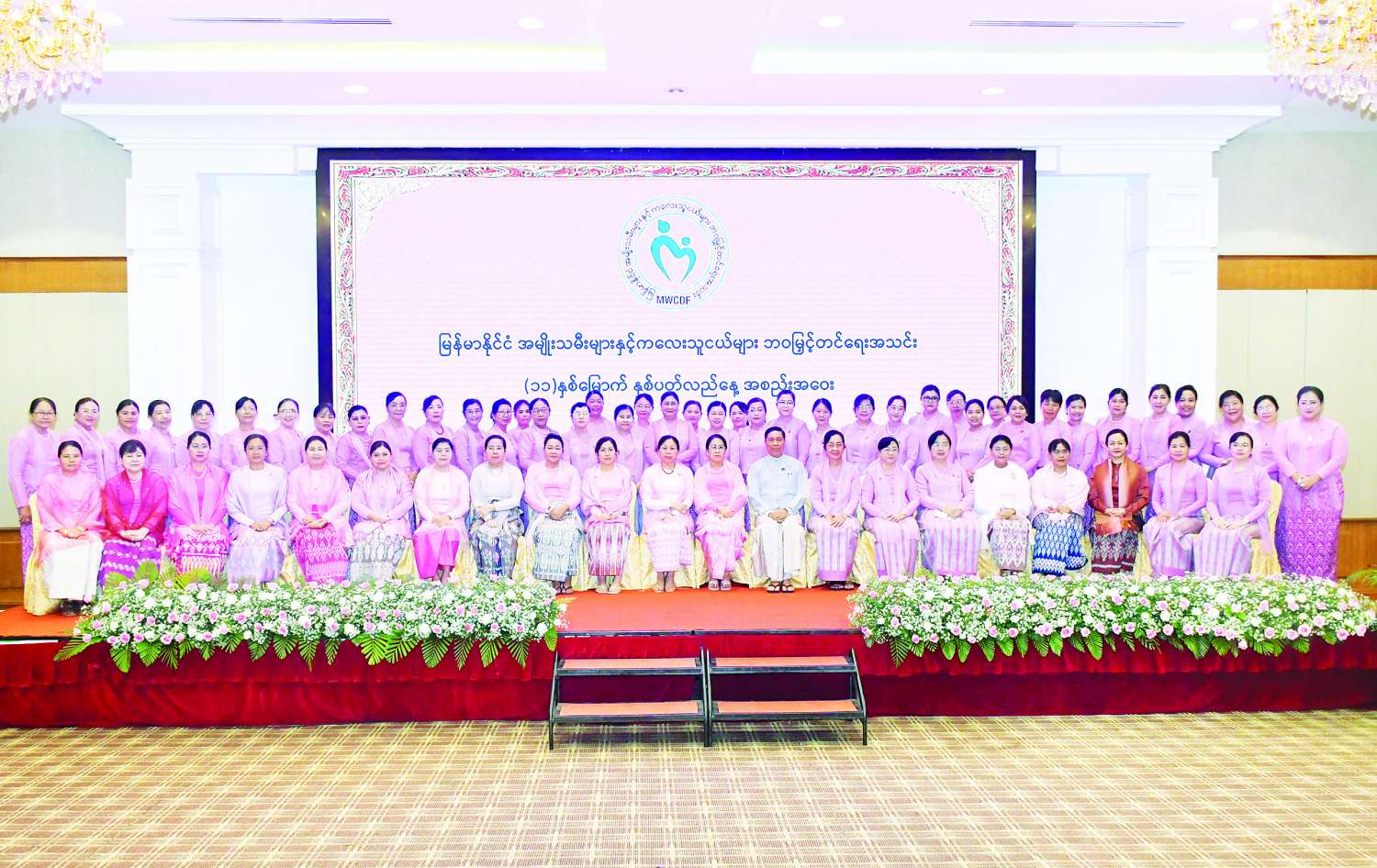 အမျိုးသမီးကော်မတီများ ဖွဲ့စည်းထားရှိရာတွင် ပြည်ထောင်စုအဆင့်မှာသာမက ပြည်ထောင်စုနယ်မြေ နေပြည်တော်အပါအဝင် တိုင်းဒေသကြီး/ ပြည်နယ် ၁၄ ခုနှင့် ခရိုင် ၁၃ ခုတို့တွင် မြန်မာနိုင်ငံ အမျိုးသမီးများနှင့် ကလေးသူငယ်များဘဝမြှင့်တင်ရေးအသင်းအနေဖြင့် အဖွဲ့ဝင်အဖြစ် ပါဝင်နေပါကြောင်း၊ အမျိုးသမီးများဖွံ့ဖြိုးတိုးတက်ရေးဆိုင်ရာ နိုင်ငံတော်အဆင့် မဟာဗျူဟာစီမံကိန်း - NSPAW (၂၀၂၃-၂၀၃၂) ကို ဦးဆောင်ကော်မတီ (၁) ရပ်နှင့် လုပ်ငန်းကော်မတီ (၁၂) ရပ်တို့ဖွဲ့စည်းကာ စီမံကိန်းကိုရေးဆွဲအကောင်အထည်ဖော်ဆောင်ရွက်လျက်ရှိပါကြောင်း၊ အသင်းအနေဖြင့် အမျိုးသမီးများအတွက် အသက်မွေးဝမ်းကျောင်းသင်တန်းများ၊ ကလေးသူငယ်များ၏ ပညာရေးနှင့် ဖွံ့ဖြိုးတိုးတက်ရေးလုပ်ငန်းများ၊ ယဉ်ကျေးလိမ္မာသင်တန်းများ၊ တိုက်ပွဲရှောင်နှင့် သဘာဝဘေးသင့် ပြည်သူများအတွက် လှူဒါန်းမှုများ၊ ကိုဗစ်-၁၉ ကာလအတွင်း ကျေးလက်နေအမျိုးသမီးဦးဆောင်အိမ်ထောင်စုများအတွက် သက်မွေးသင်တန်းများ၊ ကျန်းမာရေးစောင့်ရှောက်မှုနှင့် ကျေးလက်ဒေသဖွံ့ဖြိုးရေးလုပ်ငန်းများ ဆောင်ရွက်ပေးလျက်ရှိသည်ကို အစီရင်ခံစာများအရသိရှိရပါကြောင်း၊ အမျိုးသမီးများဖွံ့ဖြိုးတိုးတက်ရေးဆိုင်ရာ နိုင်ငံတော်အဆင့်မဟာဗျူဟာစီမံကိန်း (၂၀၂၃-၂၀၃၂) ၏ လုပ်ငန်းနယ်ပယ် (၁၂) ရပ်ကို အကောင်အထည်ဖော် ဆောင်ရွက်ရာတွင် မြန်မာနိုင်ငံလုံးဆိုင်ရာ အမျိုးသမီးကော်မတီ၏ ဦးဆောင်မှု၊ ဒေသအဆင့်ဆင့်တွင်ရှိသည့် အမျိုးသမီးကော်မတီ များအားလုံး၏ ပူးပေါင်းဆောင်ရွက်မှုနှင့်အတူ မြန်မာနိုင်ငံအမျိုးသမီးများနှင့် ကလေးသူငယ်များဘဝ မြှင့်တင်ရေးအသင်းအပါအဝင် အမျိုးသမီးအဖွဲ့အစည်းများအားလုံး၊ မိတ်ဖက်အဖွဲ့အစည်း များအားလုံးကလည်း မဟာဗျူဟာစီမံကိန်း ရည်မှန်းချက်များပြည့်မီအောင် ယခုထက်ပိုမိုပြီး တက်ညီလက်ညီ ဝိုင်းဝန်းပူးပေါင်း အကောင်အထည်ဖော်ဆောင်ရွက်ပေးရန် လိုအပ်ပါကြောင်း တိုက်တွန်းပြောကြားသည်။