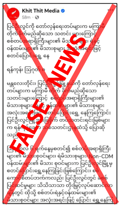 အဆိုပါသတင်းမှာ မှန်ကန်မှုမရှိသည့် ကောလာဟလသတင်းသာဖြစ်ကြောင်း သိရှိရပြီး ဒေသတည်ငြိမ်အေးချမ်းမှုပျက်ပြားစေရန်၊ တပ်မတော်သားများ၊ မြန်မာနိုင်ငံရဲတပ်ဖွဲ့ဝင်များနှင့် ဝန်ထမ်းများ စိတ်ဓာတ်ကျဆင်းစေရန်၊ ဒေသခံပြည်သူများ အထိတ်တလန့်ဖြစ်စေရန်နှင့် အကြောက်တရားလွှမ်းမိုးစေရန် ရည်ရွယ်ချက်ဖြင့် လုပ်ကြံရေးသား ဝါဒဖြန့်နေခြင်းသာဖြစ်ကြောင်း၊ လုံခြုံရေးတပ်ဖွဲ့ဝင်များအနေဖြင့် ပြည်သူများနှင့် ပူးပေါင်းကာ မြို့၊ ရွာလုံခြုံရေးအတွက် စနစ်တကျဆောင်ရွက်လျက်ရှိကြောင်း တရားမဝင်ပြည်ဖျက်မီဒီယာများက မဟုတ်မမှန် လုပ်ကြံရေးသားဖြန့်ဝေနေသော ကောလာဟလသတင်းများအား ပြည်သူများမယုံကြည်ကြရန်နှင့် ယင်းမြို့တွင် ဌာနဆိုင်ရာဝန်ထမ်းများနှင့် ဒေသခံပြည်သူများမှာ ပုံမှန်သွားလာလျက်ရှိသလို ၎င်းသတင်းနှင့်ပတ်သက်၍ ပြင်ဦးလွင်မှ ဒေသခံတစ်ဦးထံ ဖုန်းဖြင့်ဆက်သွယ်မေးမြန်းချက်အရ ယခုလိုကြားသိခဲ့ရပါတယ် “ကျွန်မကတော့ ပြင်ဦးလွင်ရပ်ကွက်ကြီး (၁၉)ကပါ။ ပြင်ဦးလွင်မှာကတော့ အေးအေးချမ်းချမ်းပါပဲ။ လုံခြုံရေးတပ်ဖွဲ့ဝင်တွေက မြို့လုံခြုံရေးကို စစ်ဆေးဆောင်ရွက်နေတာပဲရှိပါတယ်။ အားလုံးကတော့ အေးအေးချမ်းချမ်းပါပဲ။ လိုင်းပေါ်ကသတင်းတွေက ကောလာဟလတွေပဲ ဖြစ်ပါတယ်။ အဲ့ဒါတွေကတော့ ပြင်ဦးလွင်မြို့ရဲ့ တည်ငြိမ်မှုကို ပျက်ပြားအောင်လုပ်နေတဲ့ ကောလာဟလတွေပဲဖြစ်ပါတယ်”ဟု ဒေသခံပြည်သူတစ်ဦးက ပြောသည်။