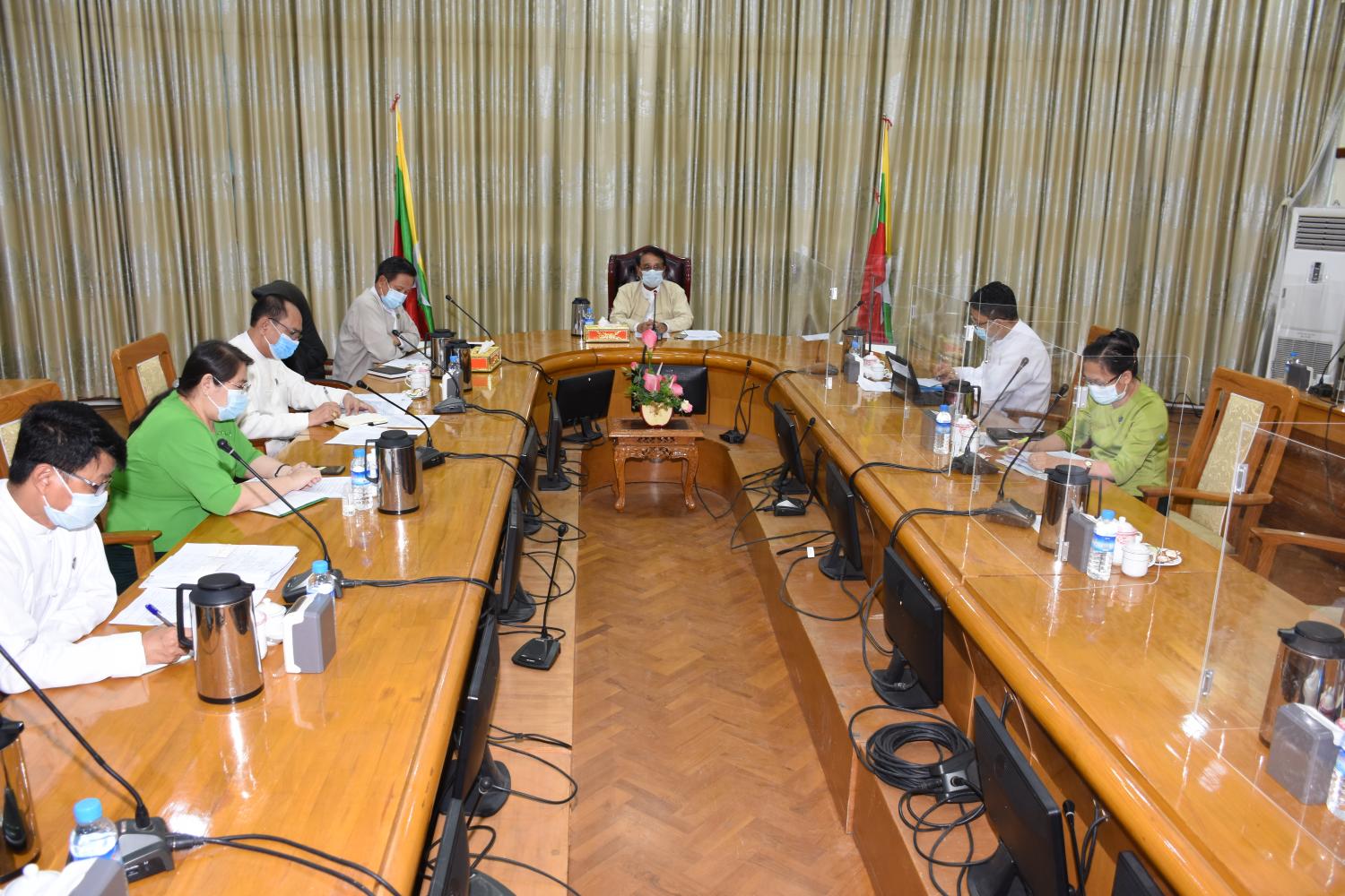 ထို့နောက် နေပြည်တော်ကောင်စီအဖွဲ့ဝင် ဦးအေးမောင်စိန်က ကိုဗစ်-၁၉ အမျိုးသား အဆင့်ဗဟိုကော်မတီ၏ ညွှန်ကြား ချက်နှင့်အညီ ကျန်းမာရေးစစ်ဆေးဆောင်ရွက်နေမှုများ၊ စစ်ဆေးရေးဂိတ်များ ဖွင့်လှစ် ဆောင်ရွက် မှုနှင့် ပတ်သက်ပြီး ရှင်းလင်းဆွေးနွေးတင်ပြပြီး ရန်ကုန် မြို့တော်ဝန်က ကုန်စည်စီးဆင်းမှုမှန်ကန်ရေးနှင့် ကုန်ဈေးနှုန်း တည်ငြိမ် ရေးအတွက် ဆောင်ရွက် နေမှုနှင့် စီစဉ်ဆောင်ရွက် ထားရှိမှုများအား ရှင်းလင်းဆွေးနွေးပြောကြားသည်။