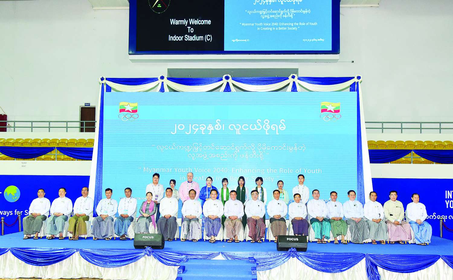 “လူငယ်ကဏ္ဍမြှင့်တင်လို့ ပိုမိုကောင်းမွန်တဲ့ လူ့အဖွဲ့အစည်းဖန်တီးစို့” ဆောင်ပုဒ်ဖြင့် ၂၀၂၄ ခုနှစ် လူငယ်ဖိုရမ်အခမ်းအနားကို ယနေ့နံနက်ပိုင်းတွင် နေပြည်တော်ရှိ ဝဏ္ဏသိဒ္ဓိအားကစားရုံ (C) ၌ ကျင်းပသည်။
