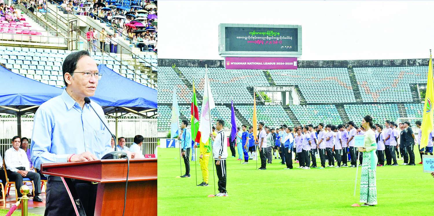 ကျန်းမာရေးဝန်ကြီးဌာန ဆေးတက္ကသိုလ်များနှင့် ဆေးပညာနှီးနွှယ်တက္ကသိုလ်ပေါင်းစုံ(ဇုန်-၁)၊ အုပ်စုအဆင့်ဘောလုံးပြိုင်ပွဲ ဖွင့်ပွဲအခမ်းအနားကို ယနေ့နံနက်ပိုင်းက ရန်ကုန်တိုင်းဒေသကြီး သင်္ဃန်းကျွန်းမြို့နယ်ရှိ သုဝဏ္ဏဘောလုံးအားကစားကွင်း၌ ကျင်းပရာ ပြည်ထောင်စုဝန်ကြီး ပါမောက္ခဒေါက်တာသက်ခိုင်ဝင်း တက်ရောက်ဖွင့်လှစ်ပေးသည်။