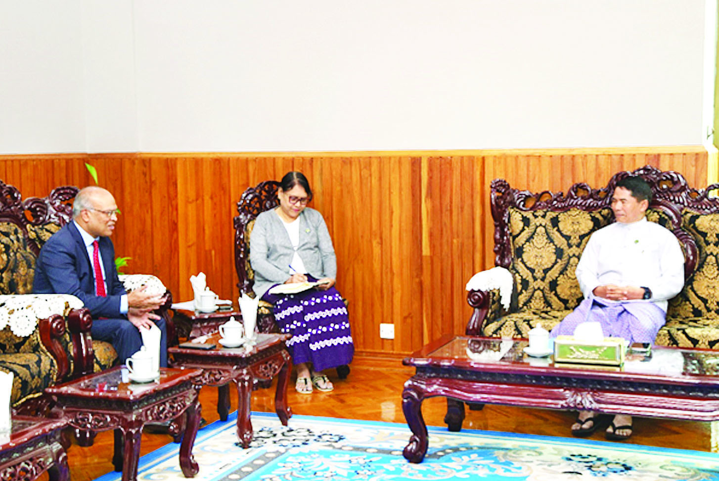 တွေ့ဆုံစဉ် နှစ်နိုင်ငံလယ်ယာထွက်ကုန်ပစ္စည်းများနှင့် ရေထွက်ကုန်ကဏ္ဍ ဖွံ့ဖြိုးရေးဆိုင်ရာများ၊ ဒေသတွင်းစားရေရိက္ခာဖူလုံပိုလျှံရေး ပူးပေါင်းဆောင်ရွက်ရန် ကိစ္စရပ်များကို ရင်းနှီးပွင့်လင်းစွာ ဆွေးနွေးခဲ့ကြသည်။