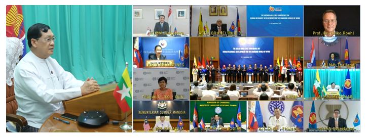 ပြောင်းလဲလာသော အလုပ်အကိုင်လောကအတွက် လူ့စွမ်းအားအရင်းအမြစ် ဖွံ့ဖြိုး တိုးတက်ရေးဆိုင်ရာ အာဆီယံဝန်ကြီးများအဆင့် ညီလာခံကို ယနေ့မွန်းလွဲ ၁၂ နာရီခွဲတွင် ဗီယက်နမ်နိုင်ငံ၊ အလုပ်သမား၊ မသန်စွမ်းနှင့်လူမှုရေးဝန်ကြီးဌာနမှ video conference ဖြင့် ကျင်းပသည်။