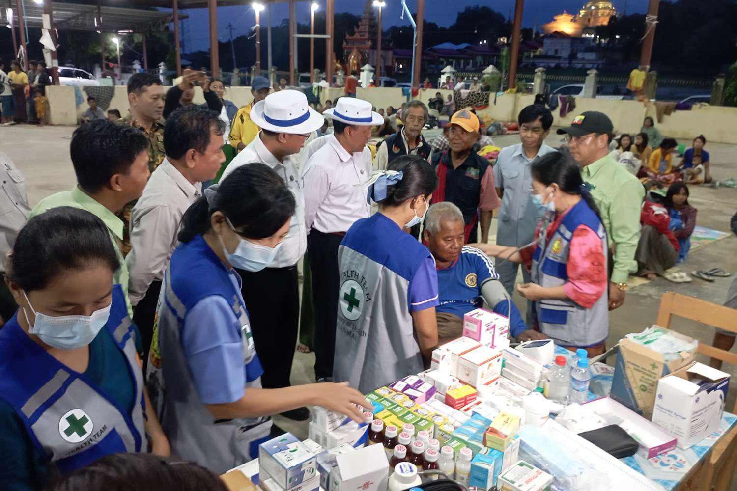 ဆက်လက်၍ မန္တလေးတိုင်းဒေသကြီးအစိုးရအဖွဲ့မှထောက်ပံ့သည့် ဆန်၊ သောက်ရေသန့်၊ ခေါက်ဆွဲခြောက် ထုတ်များ၊ ကြက်ဥနှင့်မုန့်ခြောက်ထုတ်များကို ပေးအပ်လှူဒါန်းရာ ရေဘေးရှောင် ပြည်သူများက လက်ခံရယူခဲ့ကြပြီး ရေဘေးရှောင်စခန်းတို့တွင် ကျန်းမာရေးဝန်ထမ်းများက ပြည်သူများအား ကျန်းမာရေးစောင့်ရှောက်မှုပေးနေသည့် အခြေအနေများကို ကြည့်ရှုအားပေး ခဲ့ကြောင်း သိရသည်။