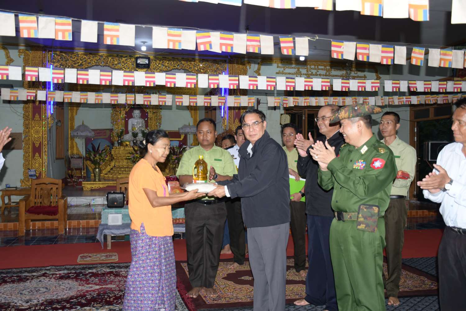 ထို့နောက် တောင်ငူဒေသခံစီးပွားရေးလုပ်ငန်းရှင်များ၊ အသင်းအဖွဲ့များနှင့် ဒေသခံပြည်သူများက ငွေကျပ်သိန်း (၄၆၂)သိန်းကို ပေးအပ်လှူဒါန်းရာ ပဲခူးတိုင်းဒေသကြီးအစိုးရအဖွဲ့ ဝန်ကြီးချုပ် ဦးမျိုးဆွေဝင်း၊တောင်ပိုင်းတိုင်းစစ်ဌာနချုပ် တိုင်းမှူးဗိုလ်ချုပ်ကြည်သိုက်နှင့် တိုင်းဒေသကြီး အစိုးရအဖွဲ့ဝင်များက လက်ခံ၍ ဂုဏ်ပြုမှတ်တမ်းလွှာများ ပြန်လည်ပေးအပ်သည်။
