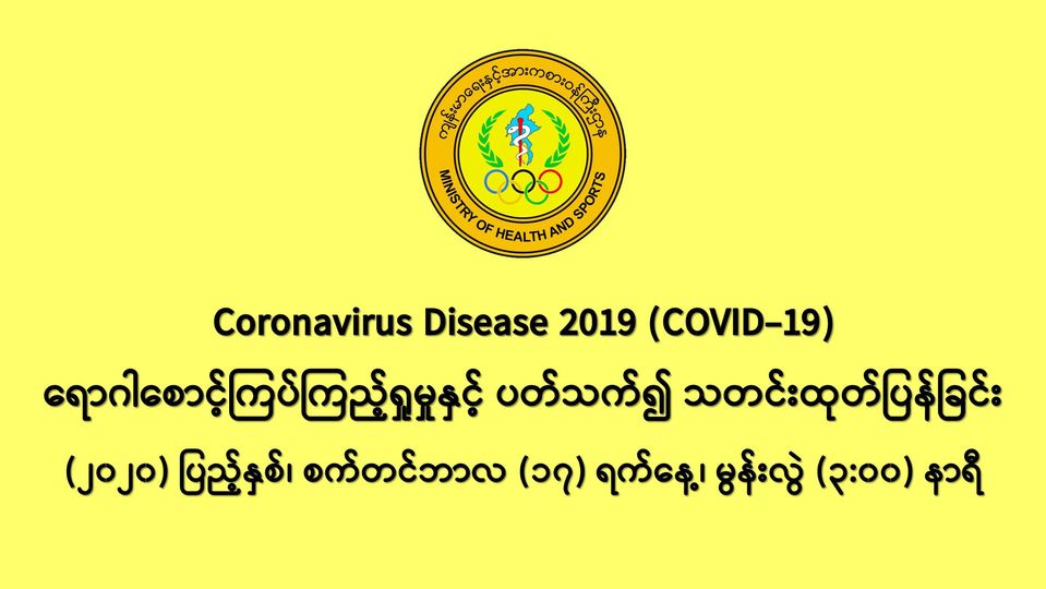 COVID-19 ရောဂါစောင့်ကြပ်ကြည့်ရှုမှုနှင့်ပတ်သက်၍ သတင်းထုတ်ပြန်ခြင်း 09/17/2020 (၁၇-၉-၂၀၂၀) ရက်နေ့၊ မွန်းလွဲ (၃:၀၀) နာရီ ၁။ ယမန်နေ့ (၁၆-၉-၂၀၂၀) ရက်နေ့ COVID-19 ရောဂါ ဓာတ်ခွဲစစ်ဆေးရာတွင် တွေ့ရှိခဲ့ရသည့် COVID-19 လူနာများတွေ့ရှိမှုအခြေအနေများကို ဖော်ပြအပ်ပါသည်။ #Ministry of Health and Sports, Myanmar