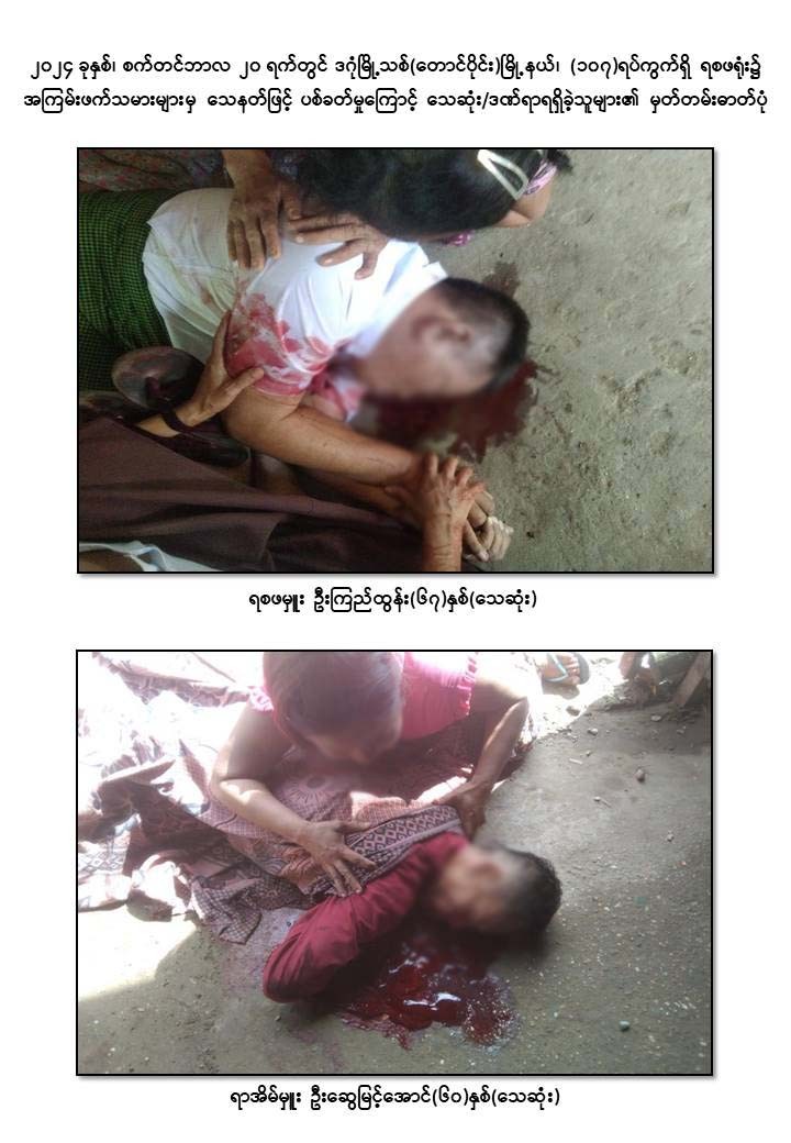 ၂၀၂၄ ခုနှစ်၊ စက်တင်ဘာလ ၂၀ ရက် နံနက်ပိုင်းတွင် ဒဂုံမြို့သစ် (တောင်ပိုင်း) မြို့နယ်၊ အမှတ် (၁၀၇) ရပ်ကွက်၊ ငုဝါမြိုင်လမ်းရှိ ရစဖရုံး၌ ရစဖမှူး ဦးကြည်ထွန်း၊ ရာအိမ်မှူး ဦးဆွေမြင့်အောင်နှင့် ရုံးအကူ ဦးမျိုးမြင့်ထွန်း (ခ) သားကြီးတို့ ၃ ဦးသည် ရုံးလုပ်ငန်းများ ဆောင်ရွက်နေစဉ် (စိစစ်ဆဲ) ကျား ၄ ဦးမှ မော်တော်ယာဉ်ဖြင့် ရောက်ရှိလာပြီး သေနတ်ဖြင့် ပစ်ခတ်ထွက်ပြေးသွားခဲ့ရာ ရစဖမှူးနှင့် ရာအိမ်မှူးတို့ သေဆုံးခဲ့ပြီး ရုံးအကူမှာ မစိုးရိမ်ရဒဏ်ရာရရှိခဲ့သည့် ဖြစ်စဉ်ဖြစ်ပွားခဲ့သည်။