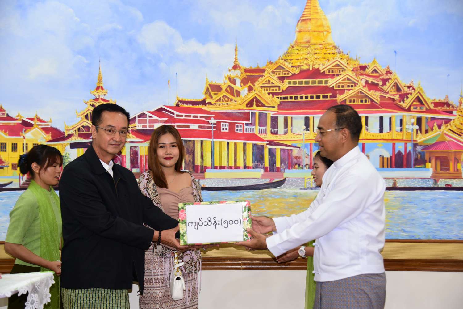 ဦးစွာ ရေဘေးသင့်ပြည်သူများအတွက် စေတနာရှင်၊ အလှူရှင်များဖြစ်ကြသည့် တောင်ကြီးမြို့၊ ဘုရားကြီးအနောက်ကျောင်း ဆရာတော်ဦးသဇ္ဇနက ငွေကျပ် (၅) သိန်းကို လည်းကောင်း၊ Red Mountain production Co,ltd က ငွေကျပ် သိန်း (၅၀၀) ကို လည်းကောင်း၊ သုဓမ္မမဏိဇောတဓရ ဦးအောင်သန်း၊ အောင်ရတနာကုမ္ပဏီလိမိတက်က ငွေကျပ် သိန်း(၃၀၀) ကို လည်းကောင်း၊ မြန်မာပြည်ပ အလုပ်အကိုင်ဝန်ဆောင်မှု လုပ်ငန်းရှင်များအသင်း(ရန်ကုန်)မှ ငွေကျပ် သိန်း(၂၀၀)ကိုလည်းကောင်း၊ တောင်ကြီးမြို့ တိမ်ဖြူတောင်ကုမ္ပဏီမှ ငွေကျပ် သိန်း (၂၀၀) ကို လည်းကောင်း၊ တောင်ကြီးမြို့ တင်မြင့်ရီ ကုမ္ပဏီလိမိတက်က ငွေကျပ်သိန်း (၁၀၀) ကို လည်းကောင်း၊ ဟဲဟိုးမြို့၊ မဟာစံအုတ်စက်ရုံမှ ငွေကျပ် သိန်း(၅၀)ကို လည်းကောင်း၊ ရန်ကုန်တိုင်းဒေသကြီး၊ စမ်းချောင်းမြို့၊ သီရိခေမာရပ်ကွက်နေ ဦးလှမြင့်+ဒေါ်ဝင်းဝင်းမြင့် မိသားစုက ငွေကျပ် သိန်း (၅၀) ကို လည်းကောင်း ဆေးတက္ကသိုလ်တောင်ကြီးမှ ငွေကျပ် (၁၀) သိန်းကို လည်းကောင်း ပေးအပ်လှူဒါန်းရာ ရှမ်းပြည်နယ်ဝန်ကြီးချုပ် ဦးအောင်အောင်က လက်ခံရယူပြီး ဂုဏ်ပြုမှတ်တမ်းလွှာများ ပြန်လည်ပေးအပ်ခဲ့သည်။