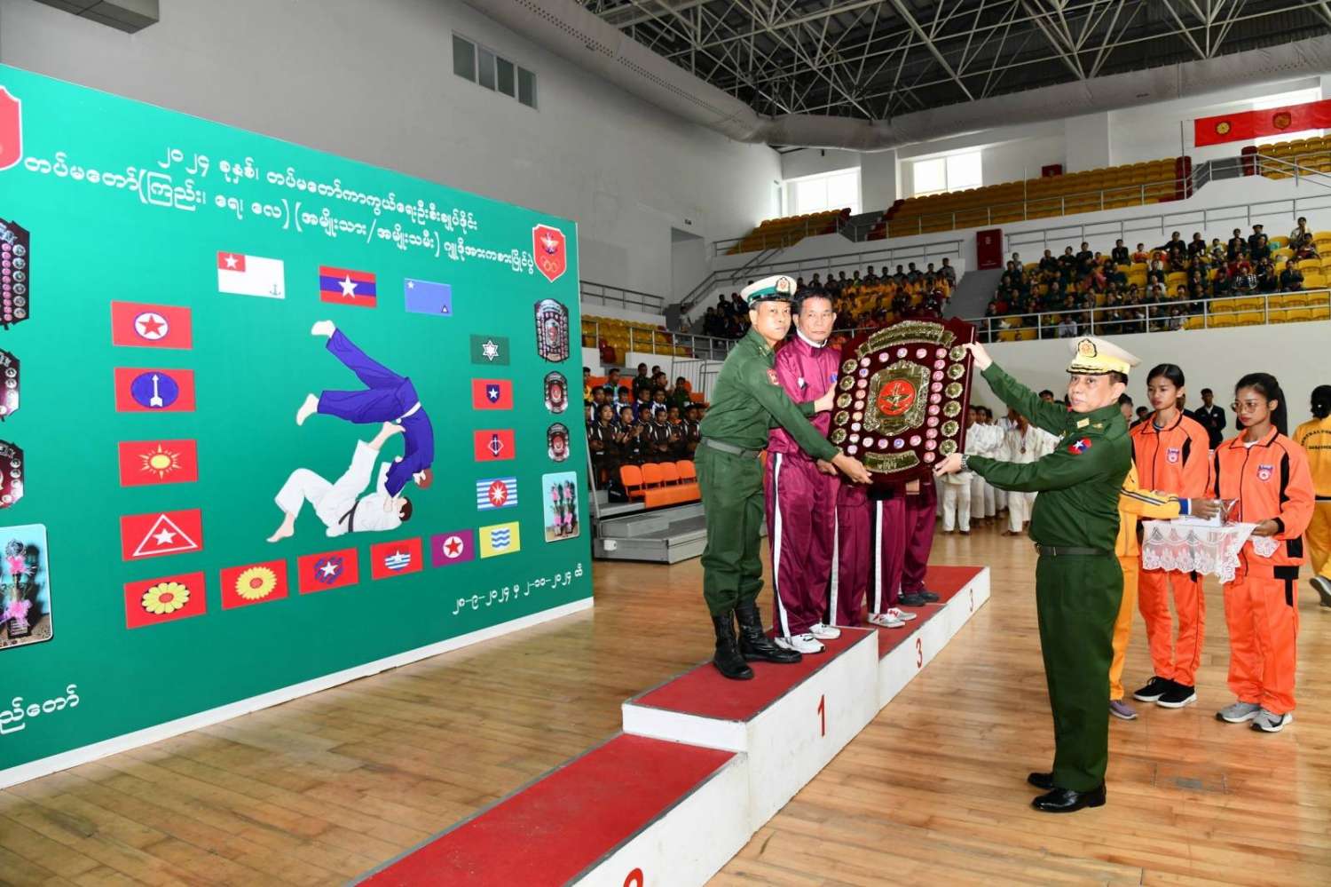 ၂၀၂၄ ခုနှစ် တပ်မတော်ကာကွယ်ရေးဦးစီးချုပ်ဒိုင်း တပ်မတော် (ကြည်း၊ ရေ၊ လေ) အမျိုးသား/ အမျိုးသမီး ဂျူဒိုပြိုင်ပွဲဆုပေးပွဲအခမ်းအနားကို ဇေယျာသိရိအားကစားရုံ (A)တွင်ကျင်းပရာ အသင်းလိုက်ပြိုင်ပွဲ ဗိုလ်လုပွဲစဉ်များ ယှဉ်ပြိုင်ကစားခဲ့ကြသည်။ ထို့နောက်ဆုပေးပွဲအခမ်းအနားအား ဆက်လက်ကျင်းပပြုလုပ်ရာ အသင်းလိုက်ပြိုင်ပွဲ၊ ပထမ၊ ဒုတိယ ၊ တတိယ၊ ပူးတွဲတတိယဆုရအသင်းများနှင့် ကီလိုတန်းအလိုက် အမျိုးသား/အမျိုးသမီး အကောင်းဆုံးကစားသမားဆုရရှိသူများ၊ မျိုးဆက်သစ်အမျိုးသမီးတံခွန်စိုက်ဒိုင်းဆုကို ရွှေ (၃)ခု၊ ငွေ (၁)ခု၊ ကြေး (၃) ခုရရှိသော အလယ်ပိုင်းတိုင်းစစ်ဌာနချုပ်အသင်းနှင့် မျိုးဆက်သစ်အမျိုးသားတံခွန်စိုက်ဒိုင်းဆုကို ရွှေ (၃)ခု၊ ကြေး (၂)ခု ရရှိသော ကာကွယ်ရေးဦးစီးချုပ်ရုံး(ရေ) အသင်း၊ အမျိုးသမီး တံခွန်စိုက်ဒိုင်းဆုကို ရွှေ(၃)ခု၊ ငွေ(၂)ခု၊ ကြေး(၂)ခုရရှိသော ကာကွယ်ရေးဦးစီးချုပ်ရုံး (ရေ)အသင်းနှင့် အမျိုးသားတံခွန်စိုက်ဒိုင်း ဆုကို ရွှေ(၈)ခု၊ ငွေ (၂) ခု၊ ကြေး (၄)ခု ရရှိသော မြောက်ပိုင်းတိုင်းစစ်ဌာနချုပ်အသင်း၊ ပြိုင်ပွဲတွင် ကူညီဆောင်ရွက်ပေးသည့် ဒိုင်လူကြီများနှင့် တပ်မတော်ကာကွယ်ရေးဦးစီချူပ်၏ စုပေါင်းတံခွန်စိုက်ဒိုင်း ဆုကိုရွှေ (၁၁) ခု၊ ငွေ (၃)ခု၊ ကြေး (၅)ခုဖြင့်ရရှိသော မြောက်ပိုင်းတိုင်းစစ်ဌာန်ချူပ် အသင်းတို့အား တပ်မတော်ဂျူဒိုကော်မတီဥက္ကဋ္ဌ၊ ဒုတိယတပ်မတော်လေ့ကျင့်ရေးအရာရှိချုပ် ဗိုလ်ချုပ်အောင်မျိုးသန့်နှင့် တာဝန်ရှိသူများက ဆုများအသီးသီးချီးမြှင့်ပေးအပ်သည်။