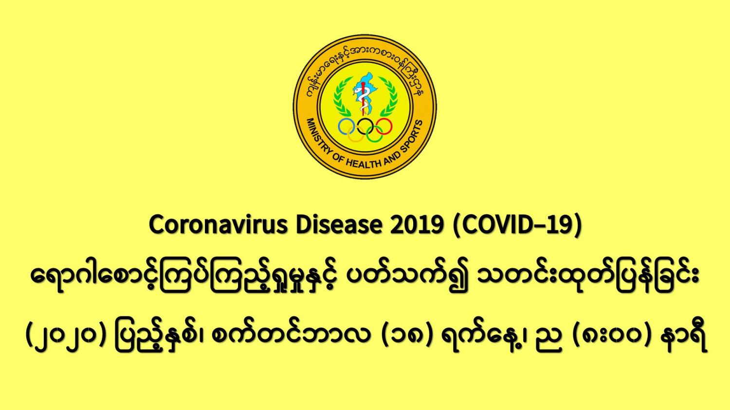 • COVID-19 ရောဂါ ဓာတ်ခွဲအတည်ပြုလူနာသစ် (၁၆၈) ဦး တွေ့ရှိရပါသည်။